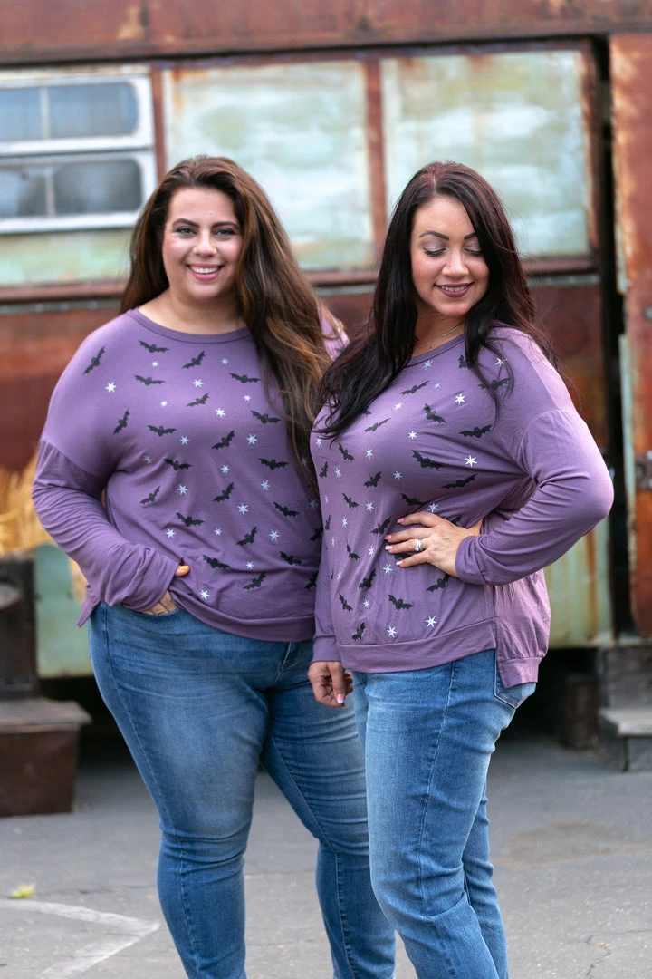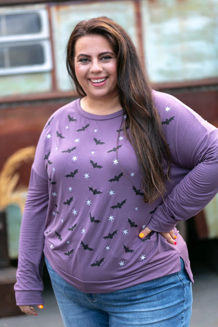 We are going batty over this long sleeve top! With a relaxed fit, this top features a boat neck and hi-lo hem.Β Β