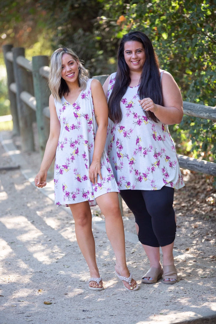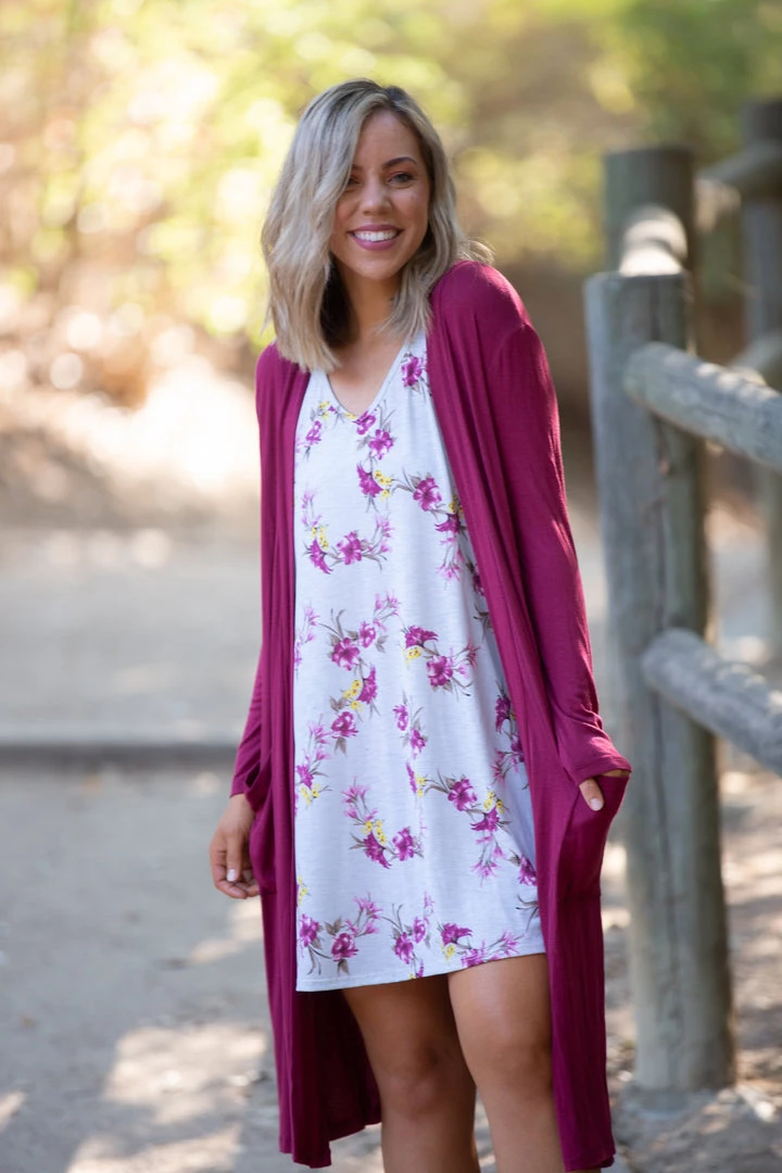 The MOST perfect swing dress in all the land, we can get over how stunning the burgundy florals are against this extreemly light blue background! Featuring the classic swing fit, with a v-neck and pockets! Best part, it can be worn as both a dress or tunic, so this piece will last through all the seasons.
