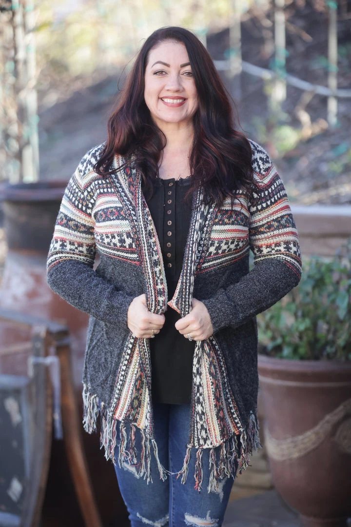 No one will ever be able to forget you with this stunning knit sweater cardigan! The fringe and knit detail is impeccable in this open face cardigan. An absolute must have.