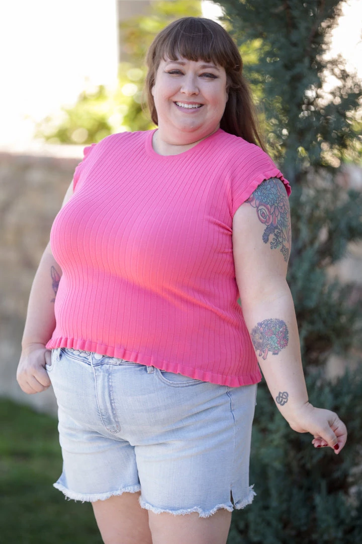 This vibrant coral knit top is perfect on its own, or for layering. Made from THE softest knit, this top features a round neckline, and ruffled detailing.