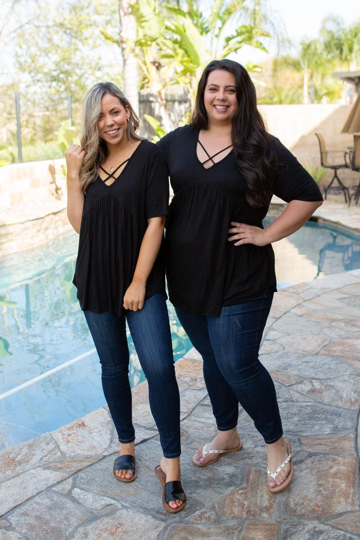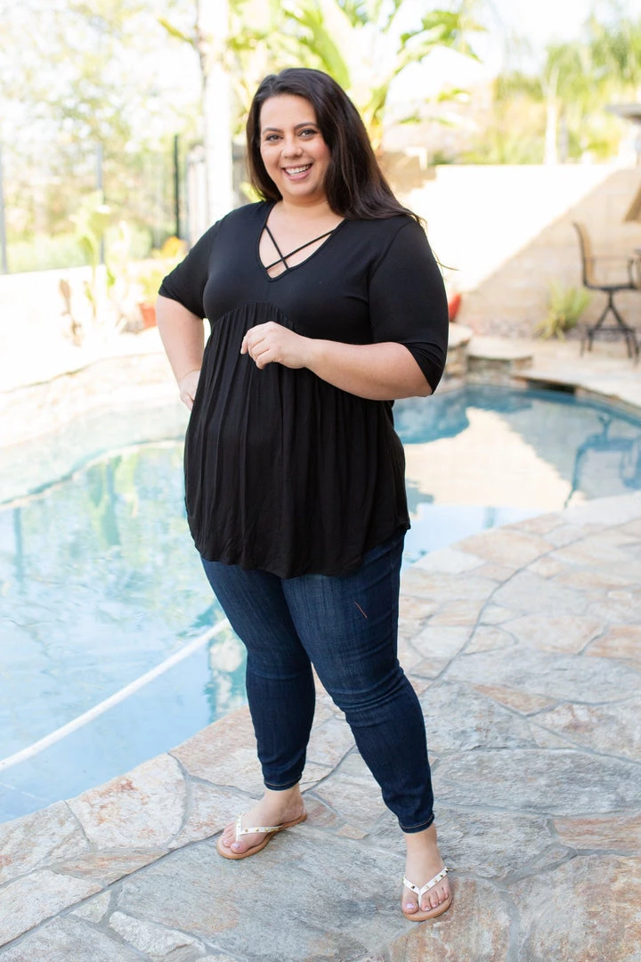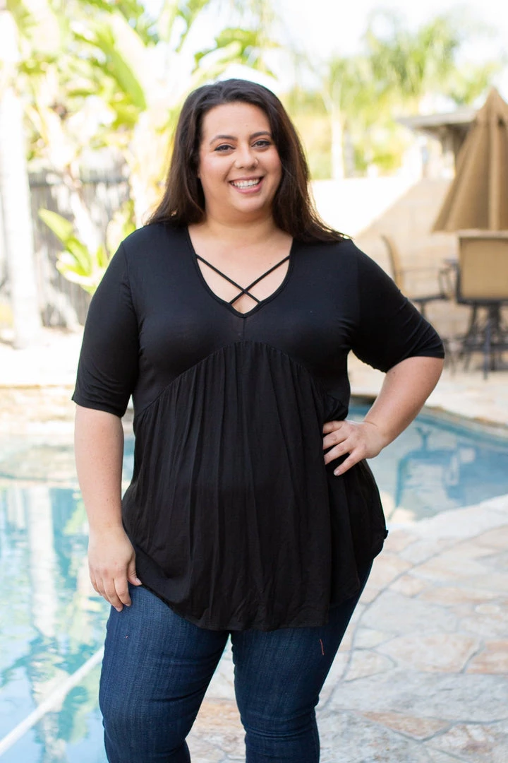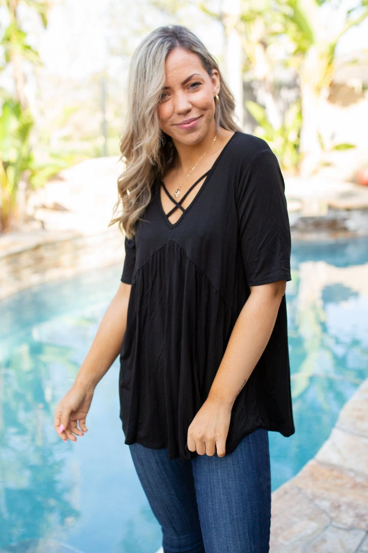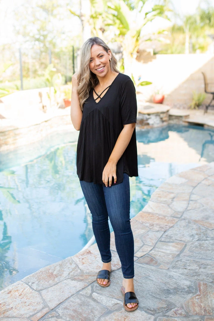 Meet any crossroad in life head on with this gorgeous and unique babydoll top. With a relaxed fit, this top features half sleeves, v-neck with criss cross details and an empire waist.Β