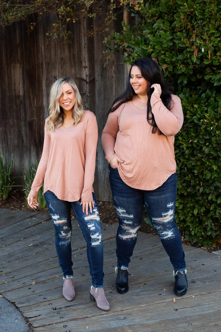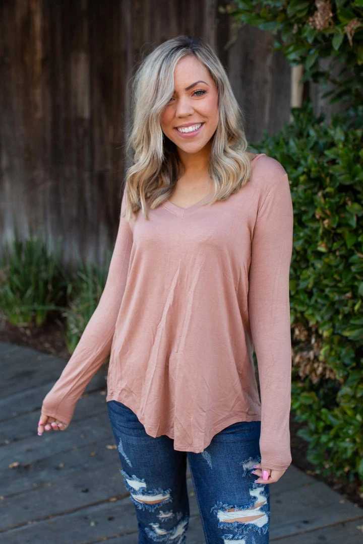 This everyday long sleeve tee is literally something that you’ll want to wear every day! Made from premium jersey fabric, this tee features long sleeves, a v-neck and round hem.Β
