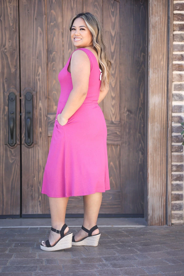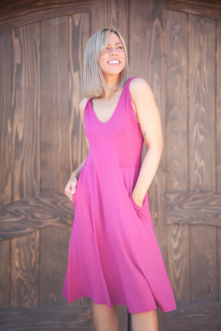 You are going to love the feel and fit of this super fun and flirty everyday dress. Made from the highest quality fabric, this dress features a front and back v, no fuss straps and pockets!