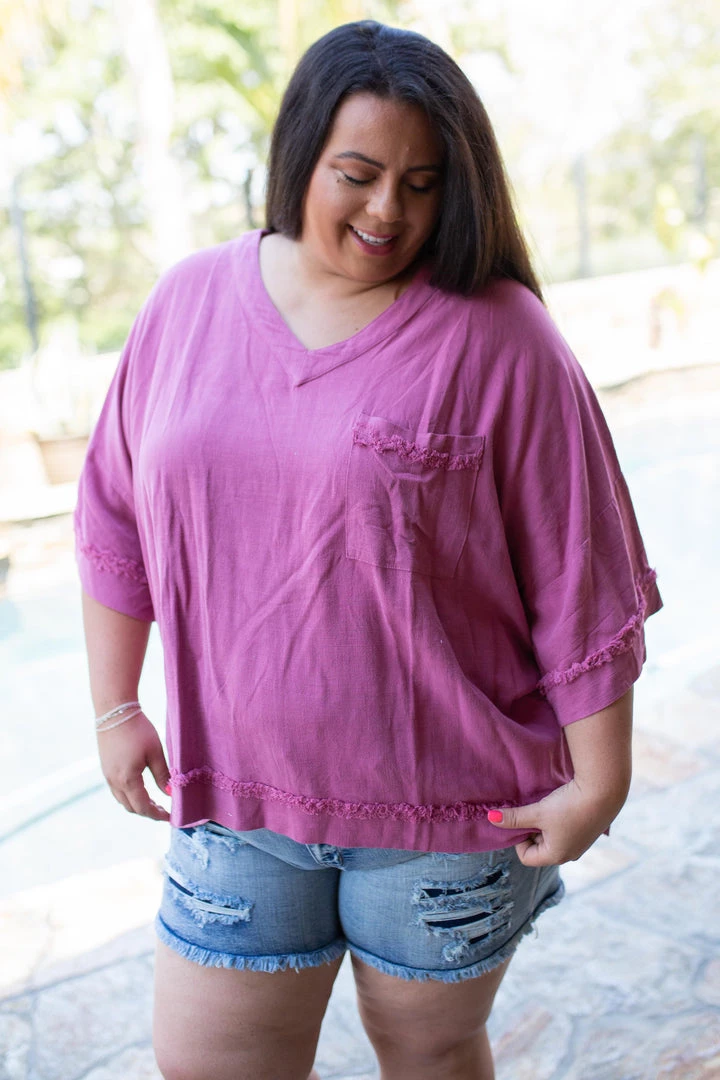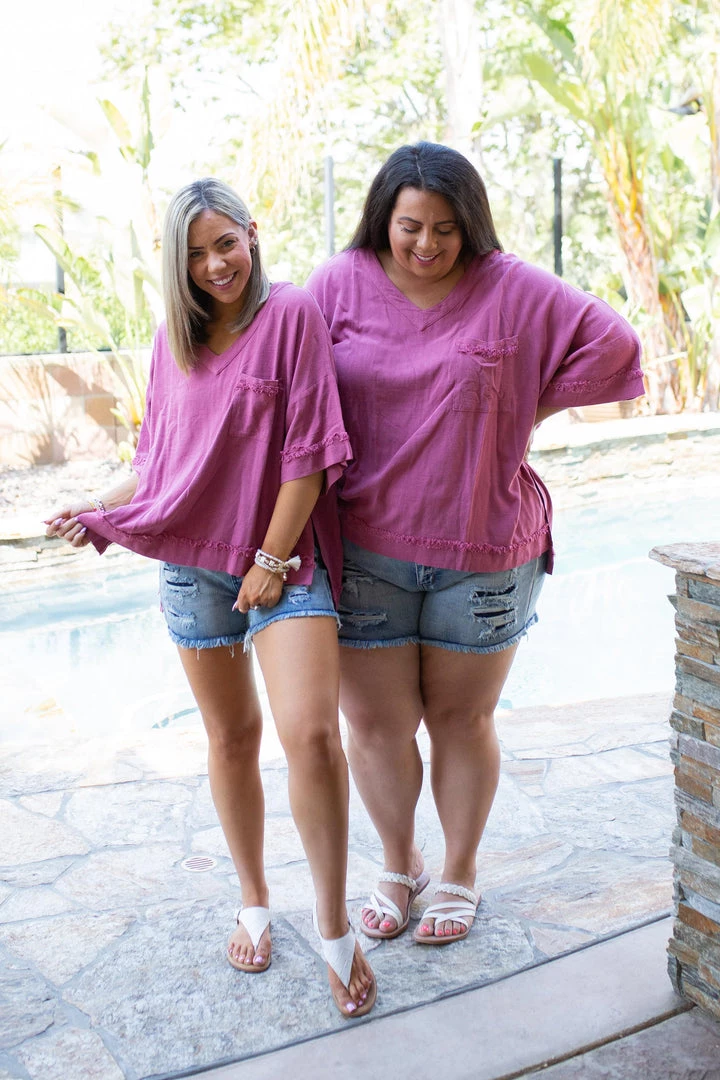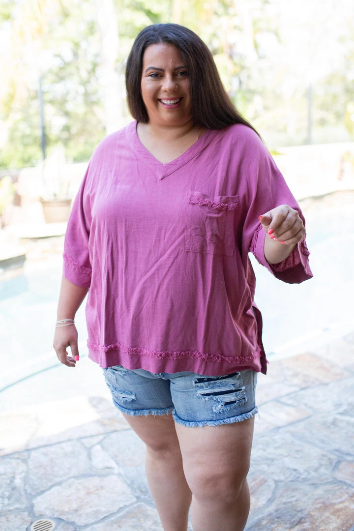 This oversized tunic top is the perfect piece to add to your closet, as it pairs so well with just about anything. The relaxed oversized fit, paired with the v-neck and frayed details make this top truly unique.Β