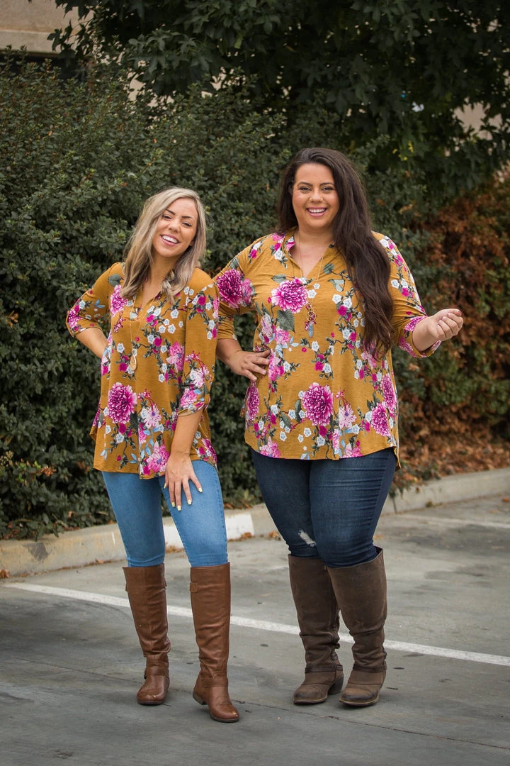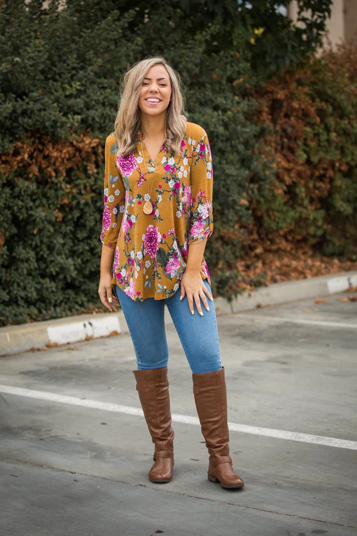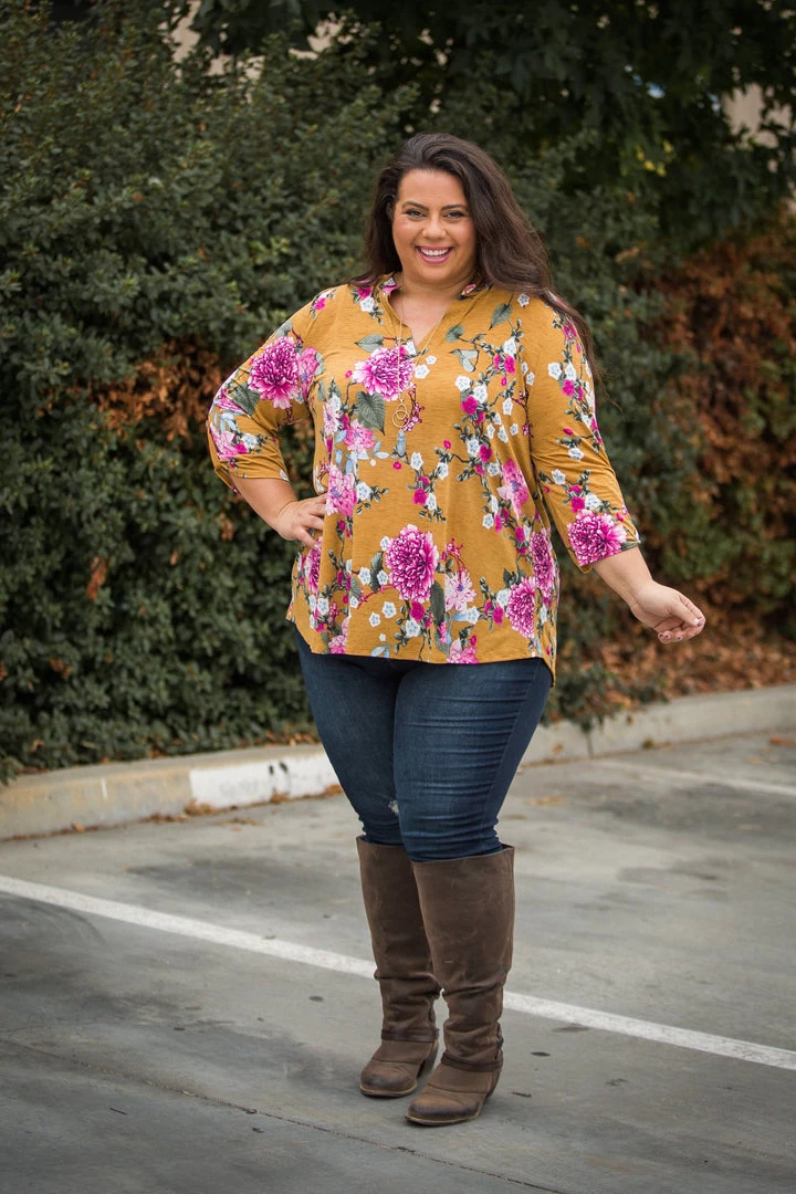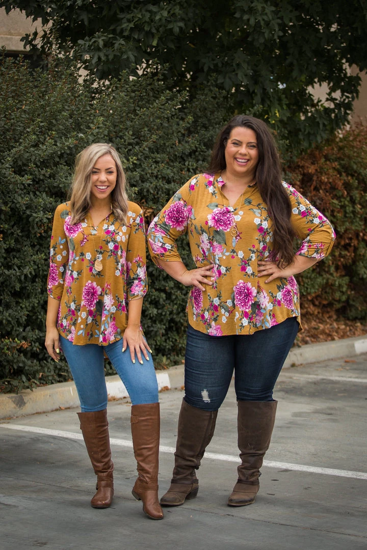SearchingΒ for the perfect lightweight tunic? Look no further.Β Featuring a banded collar, v-neck and buttoned 3/4 sleeves, this top will make gettingΒ dressed seem effortless.