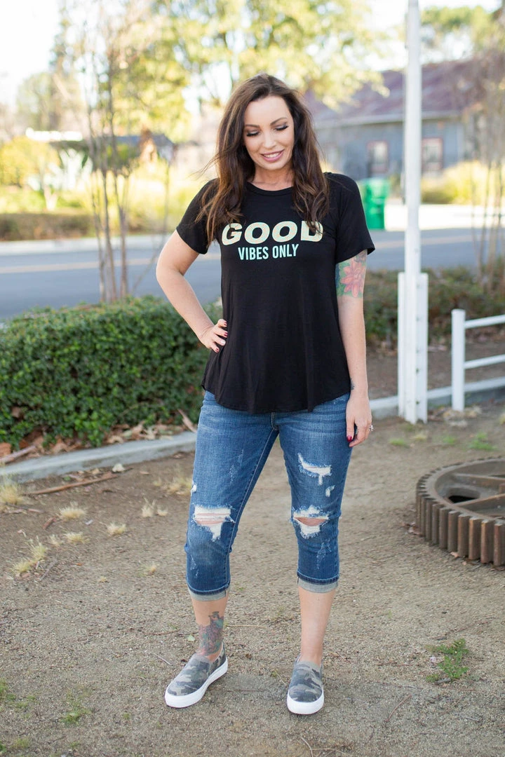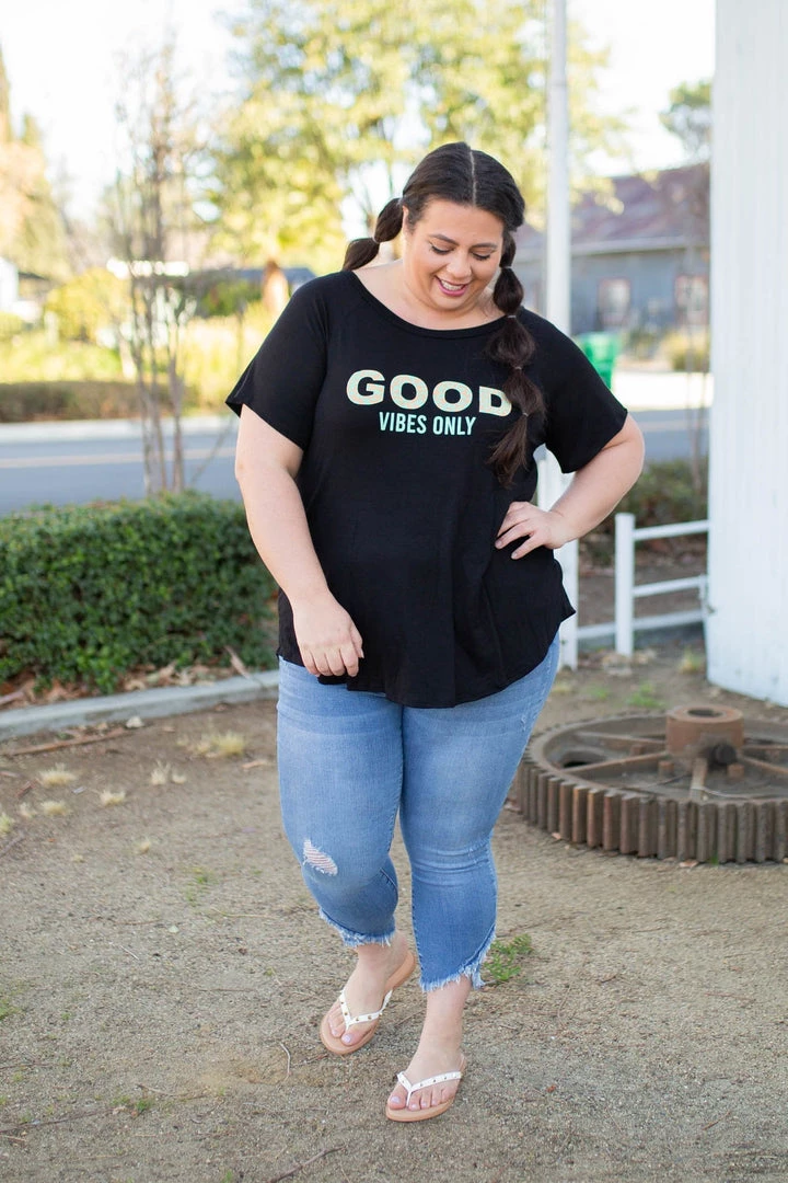 Nothing but good vibes while wearing this super comfy short sleeve top. With a relaxed fit, this top features short sleeves, a round neckline and rounded hem.Β Β Β Β Β