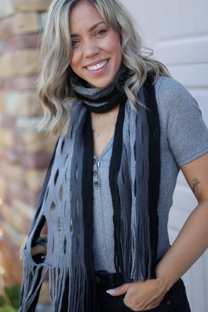 This will become your favorite scarf shawl for stylish look, as a light wrap in thoseΒ chillyΒ evenings or wrapped around your neck scarf style. The fabric cut up all around, give this scarf a unique chic look, make this scarf one of a kind item in your closet.
