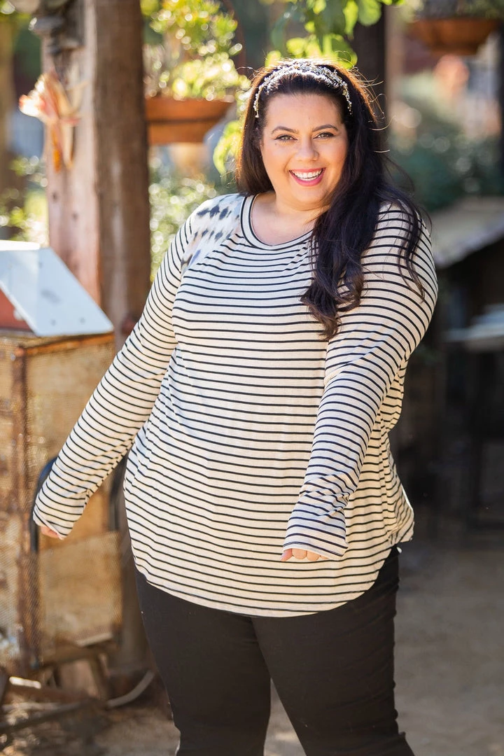 We are in love with this striped long sleeve top. The contrasting tie dye really gives the stripes the perfect break to not overwhelm the eye. Featuring long sleeves a round neckline and added tie dye back panel, this is the perfect unique addition to your wardrobe.Β Β Β Β Β