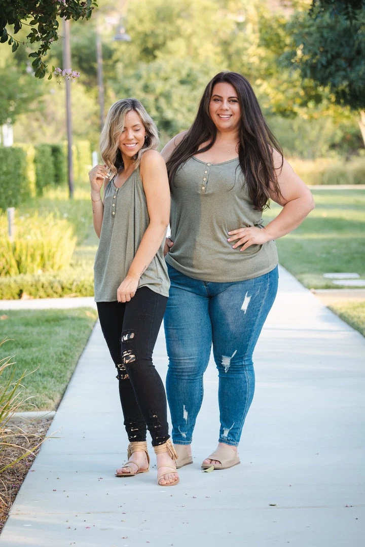 Thisย tank will become the heart & soul of your wardrobe. Made from the highest quality fabric, this tank offers nice weight that will keep you both warm and cool. With a relaxed fit, this tank features, a v-neck with button details and 1 inch shoulder straps.ย ย ย ย ย ย