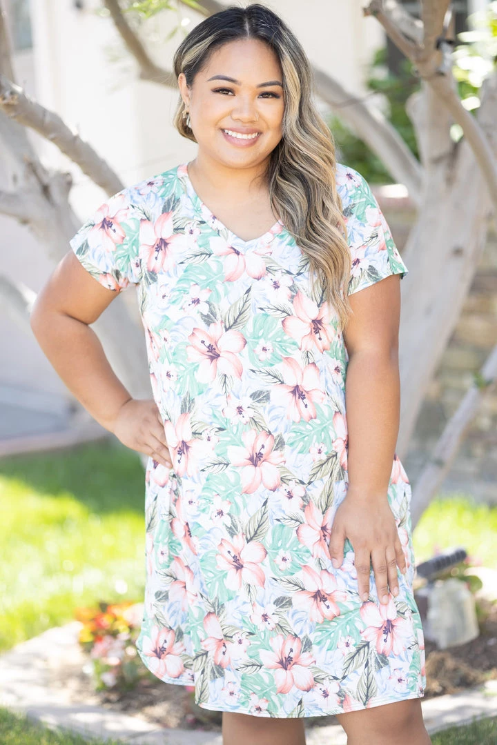 This floralΒ printed swing dress is like a dream. With a relaxed fit, this dress features a V-neck, short sleeves, rounded hem and pockets!Β