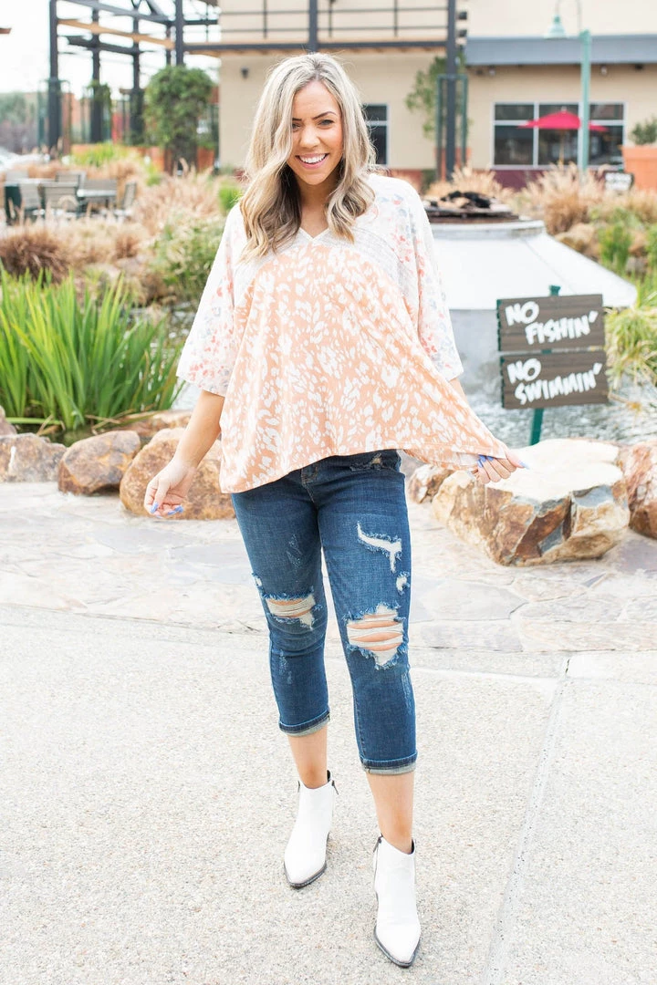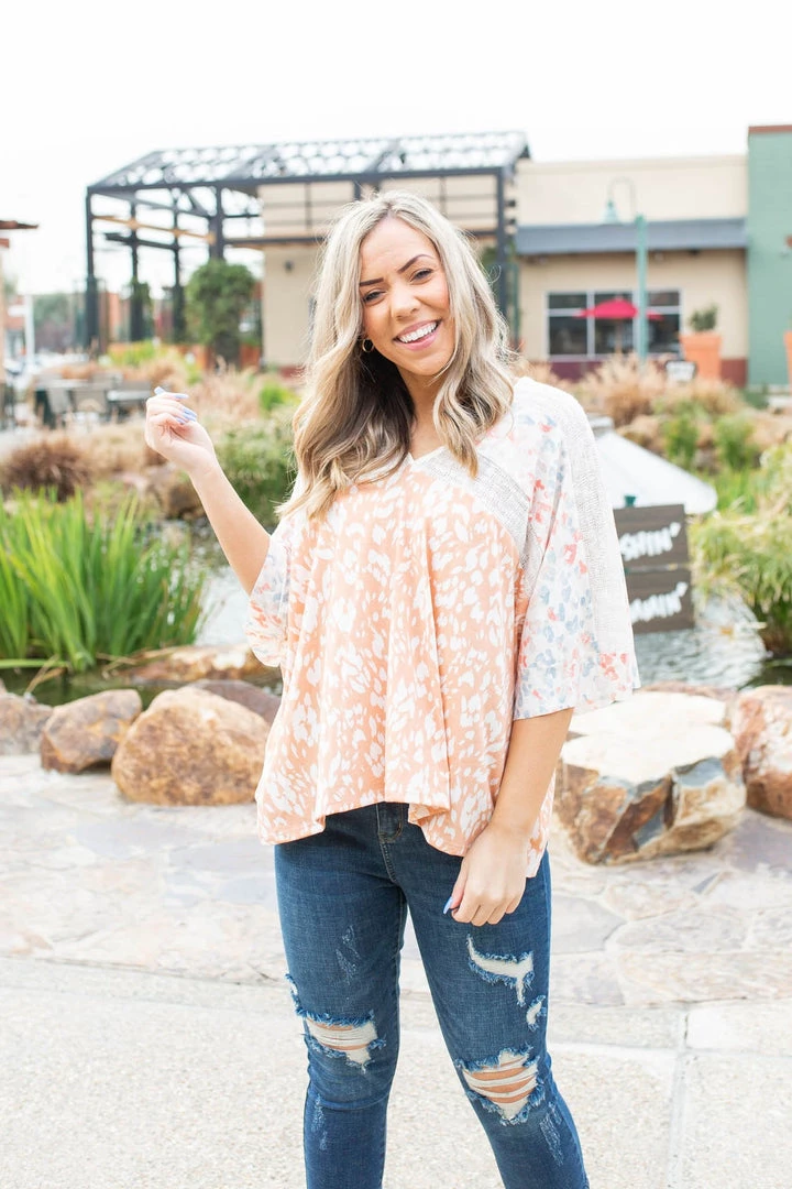 Find joy in the everyday with this stunning color blocked boxy top. Featuring a v-neck and short sleeves, this top will pair great with just about anything!Β Β Β