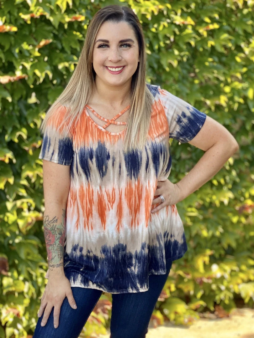 This top came just in time to give us those warm fall vibes! Featuring a criss cross detail and relaxed fit, this top will be perfect year round.