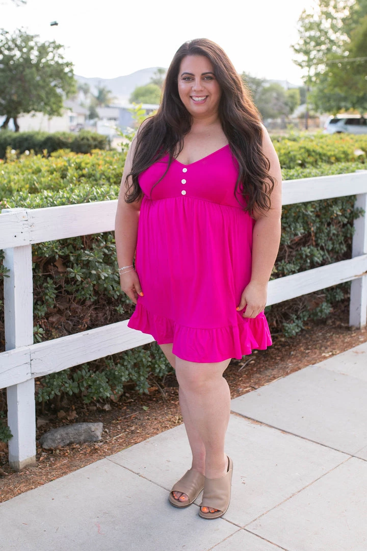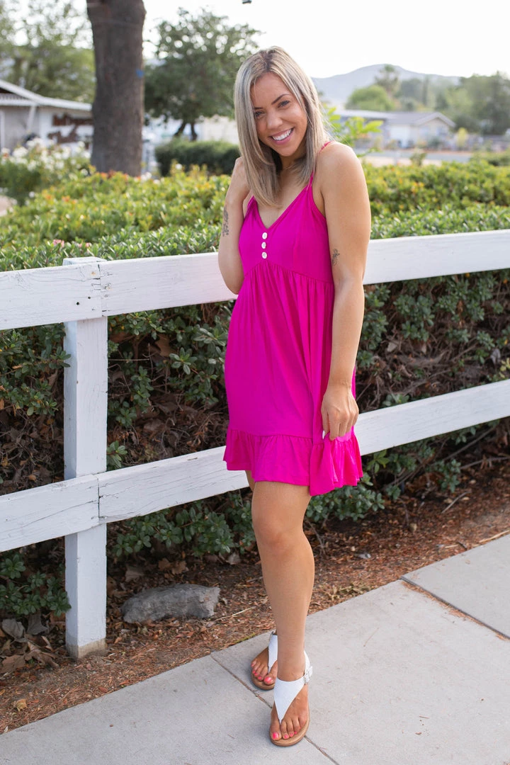 This is seriously the perfect little summer dress. Not only is it comfortable, but it’s effortless and it can be worn as a dress or a tunic! With relaxed fit, this dress features spaghetti straps, a v-neck with button details, empire waist and ruffled hem.Β