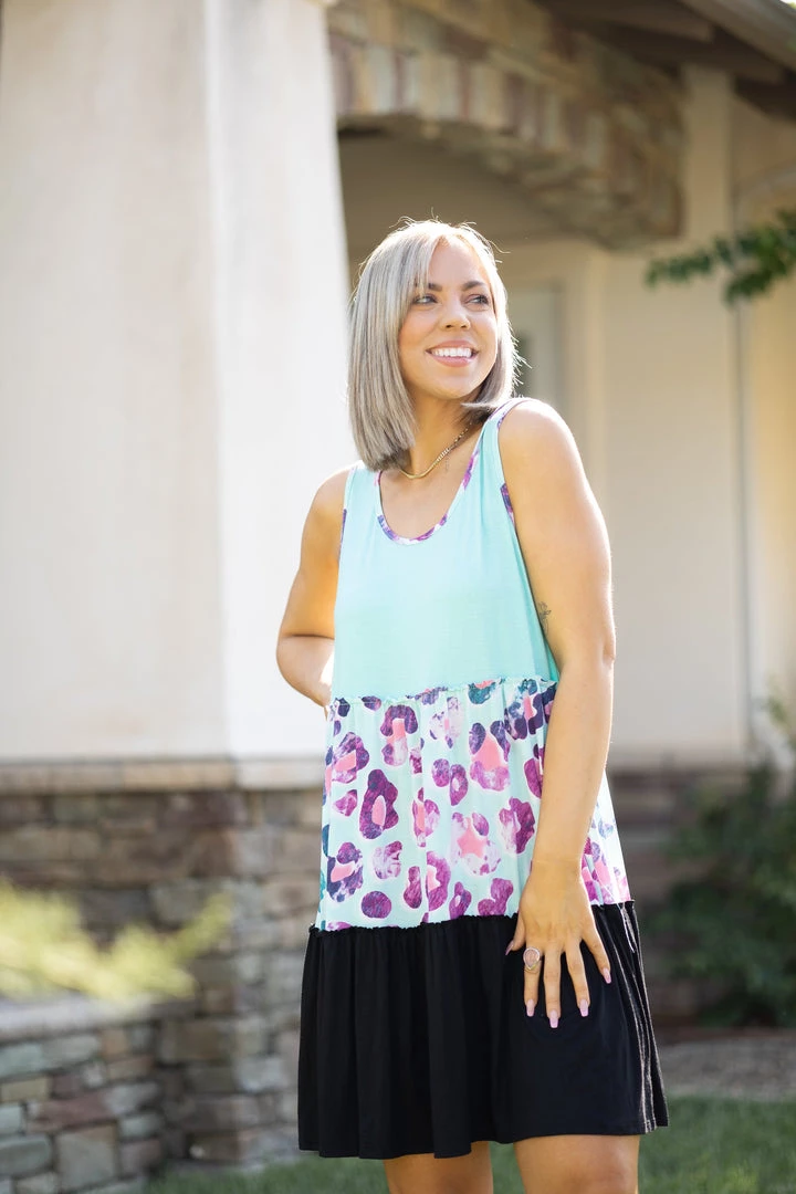 This gorgeous color block dress is not only comfortable, but it’s absolutely effortless. With a relaxed A-line fit, this sleeveless dress features a scoop, side pockets and tiered ruffled hem.