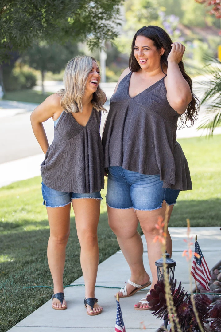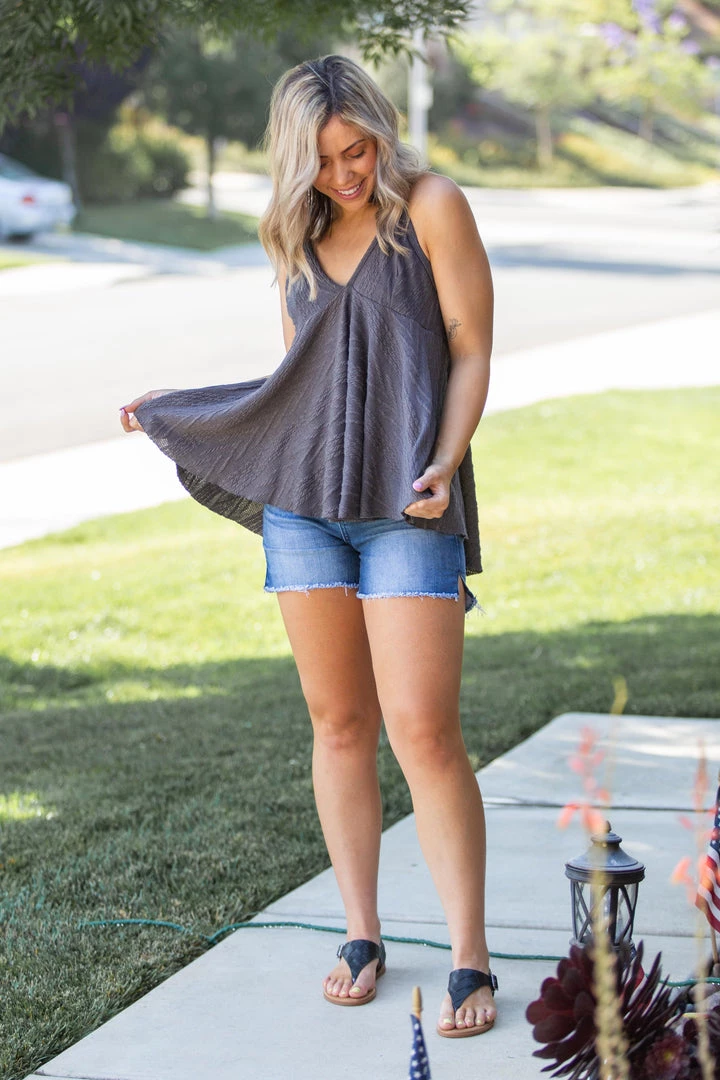 You get the best of both worlds with this amazing piece, sweater material and a tank top! Perfect all year long. With a relaxed fit, this top features spaghetti straps with a racerback, hi low hem and empire waist.Β