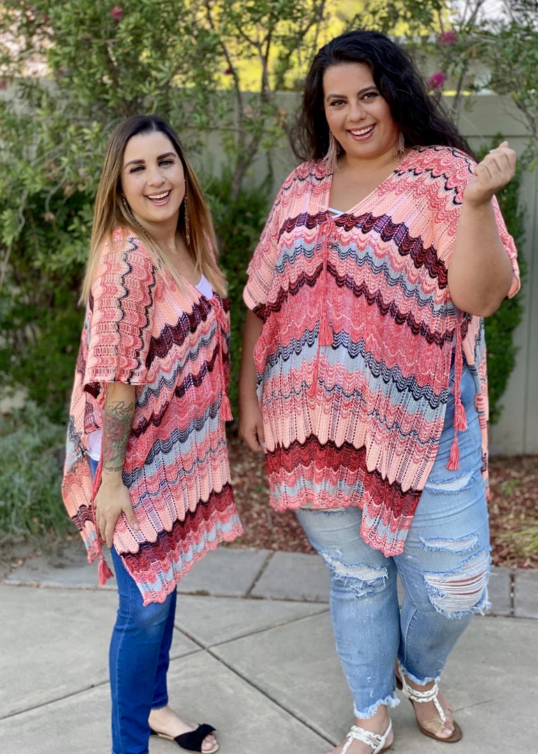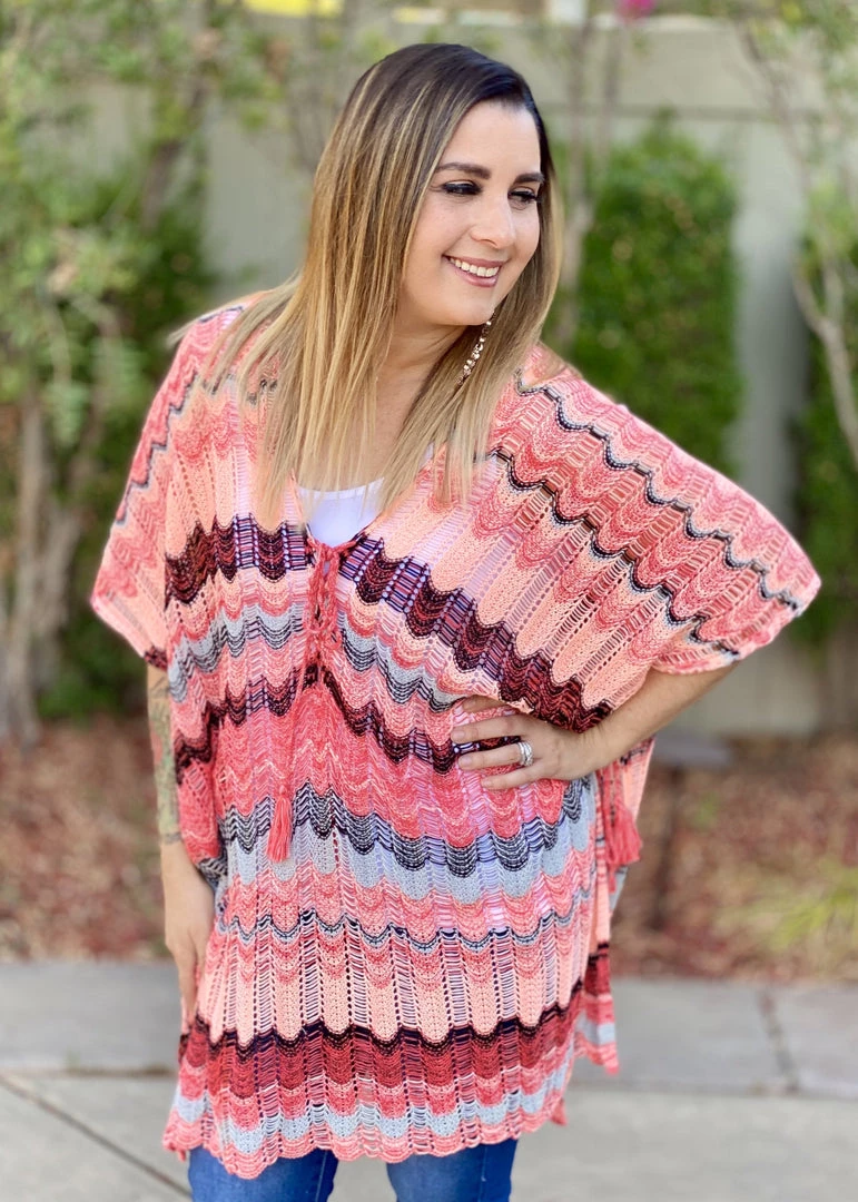 This poncho is the absolute best poncho we’ve ever put on. The light, loose knit fabric is perfect throughout the entire year. We love the open sides that are adjustable with the long tassel ties. Featuring a wide boat v-neck (also adjustable with tassel ties) this poncho is perfect to wear over over just about anything.Β