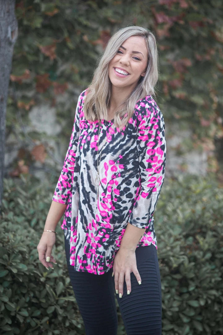 That’s right! A v-neck version of the Gabby. This 3/4 sleeve top has a relaxed fit with just the right amount of tailoring to give you the perfect silhouette. Made from the amazing bulgari fabric, this top will make you hustle in beauty.