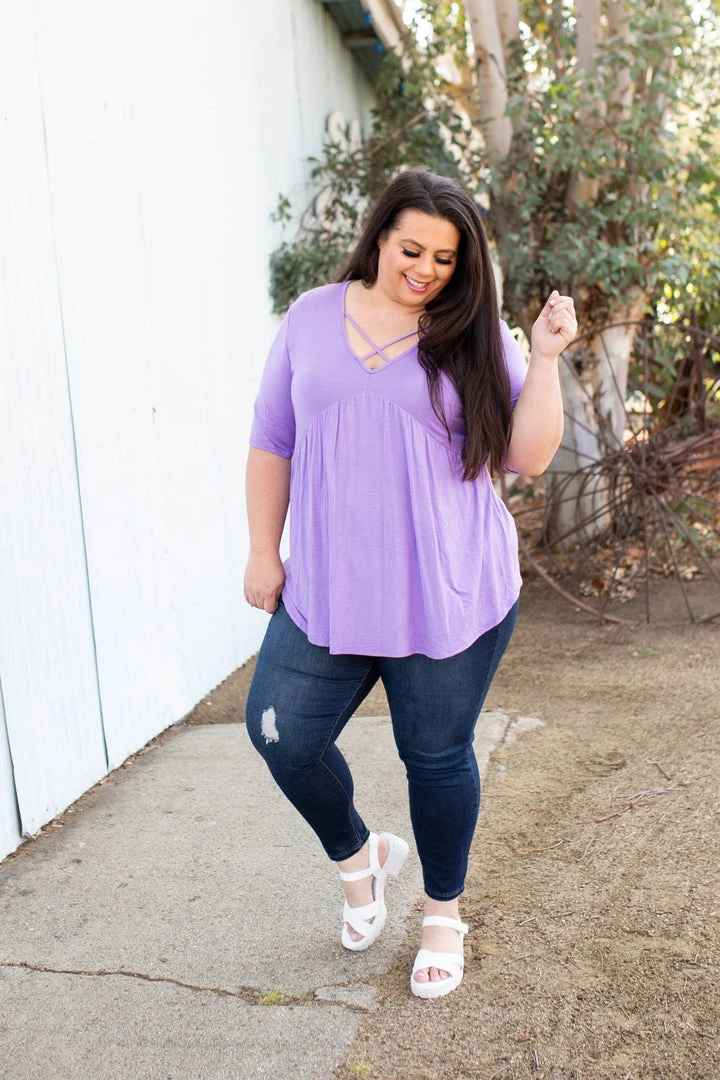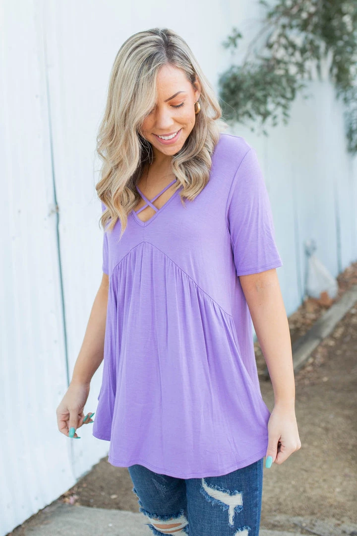 Meet any crossroad in life head on with this gorgeous and unique babydoll top. With a relaxed fit, this top features half sleeves, v-neck with criss cross details and an empire waist.Β