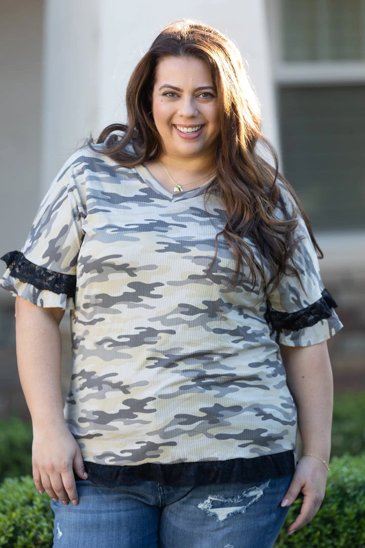 Say hello to the most amazing lace trim top you will find this season. Made from a micro ribbed fabric, this top features a v-neck, short ruffle sleeves with lace trim and a hi lo hem…also with a lace trim!Β Β