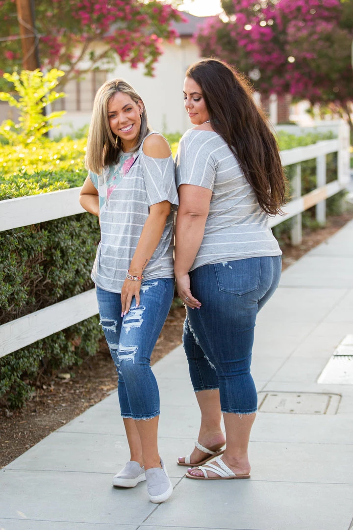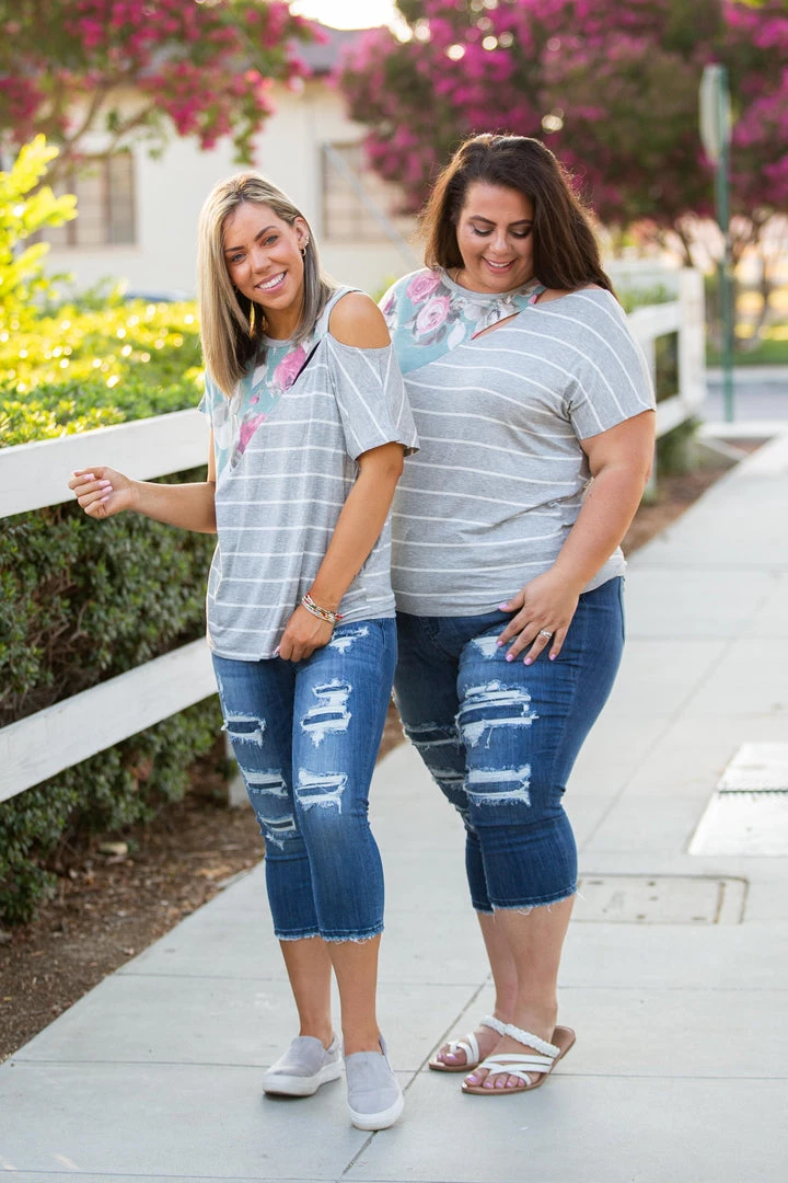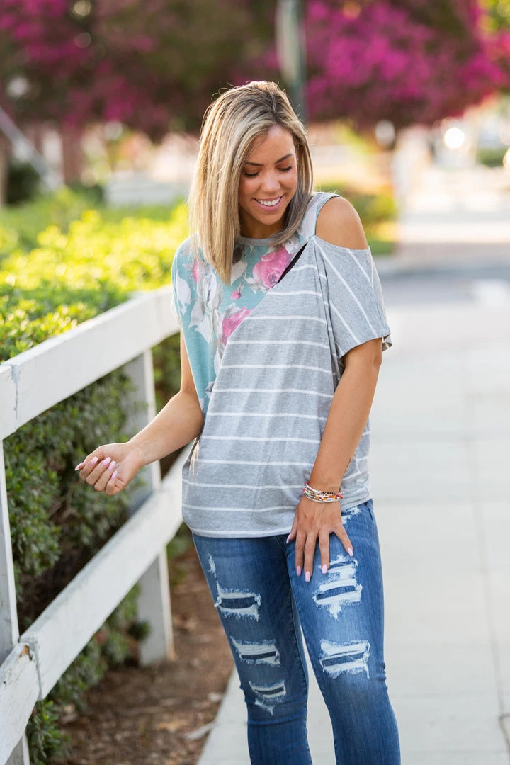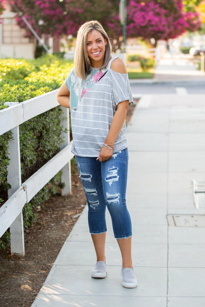 We love how flirty and fun this short sleeve top is. Made from the softest jersey fabric, this top features short dolman sleeves with one cold shoulder, a round neckline and rounded hem.Β Β