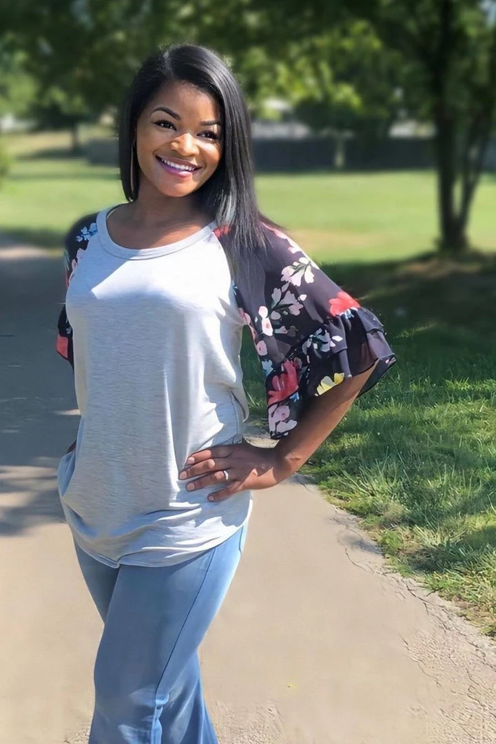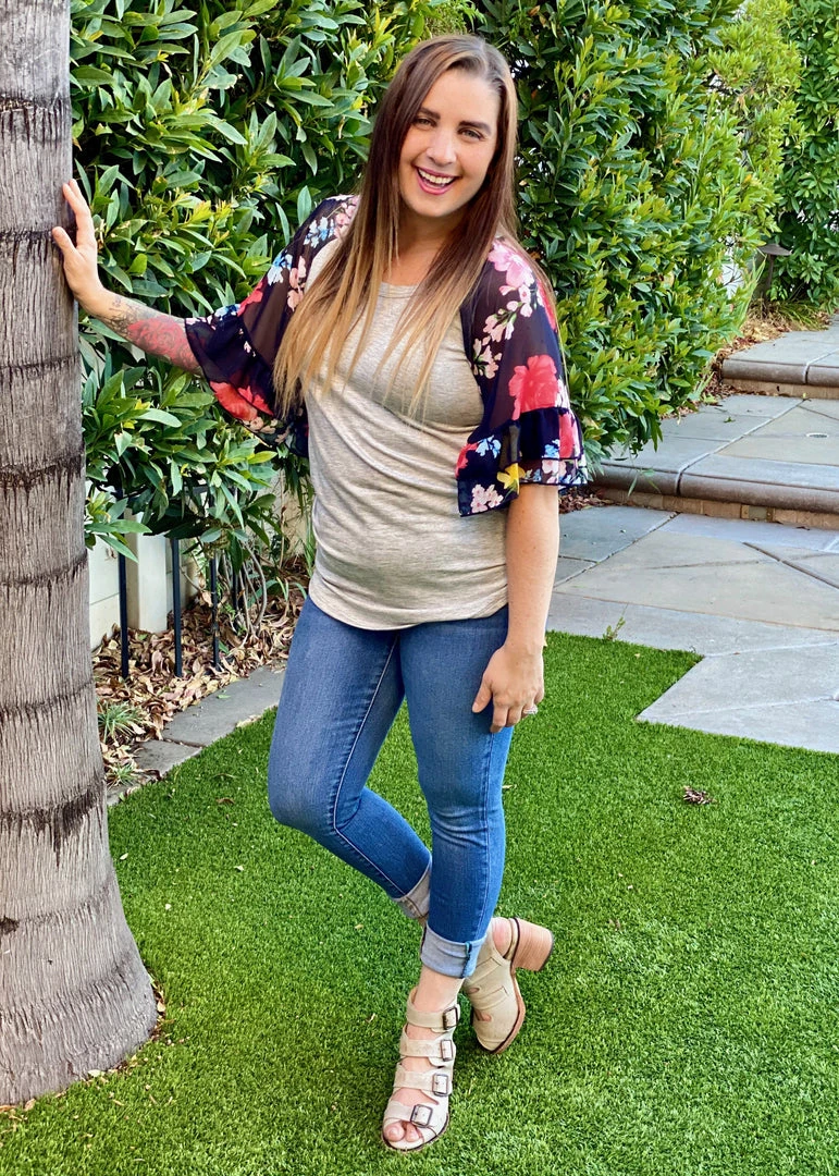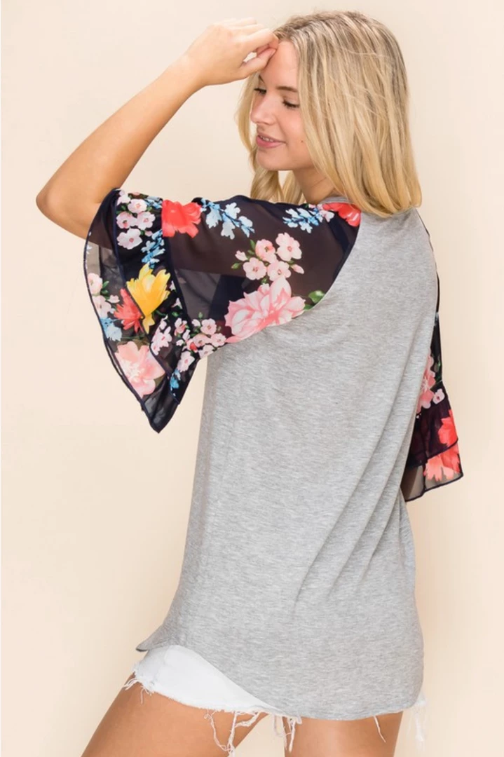 The best bell sleeve ever! Featuring a comfortable fit, super cute round neckline and of course the amazing sheer floral printed bell sleeves!Β We are head over heels especially because if how comfy it is!