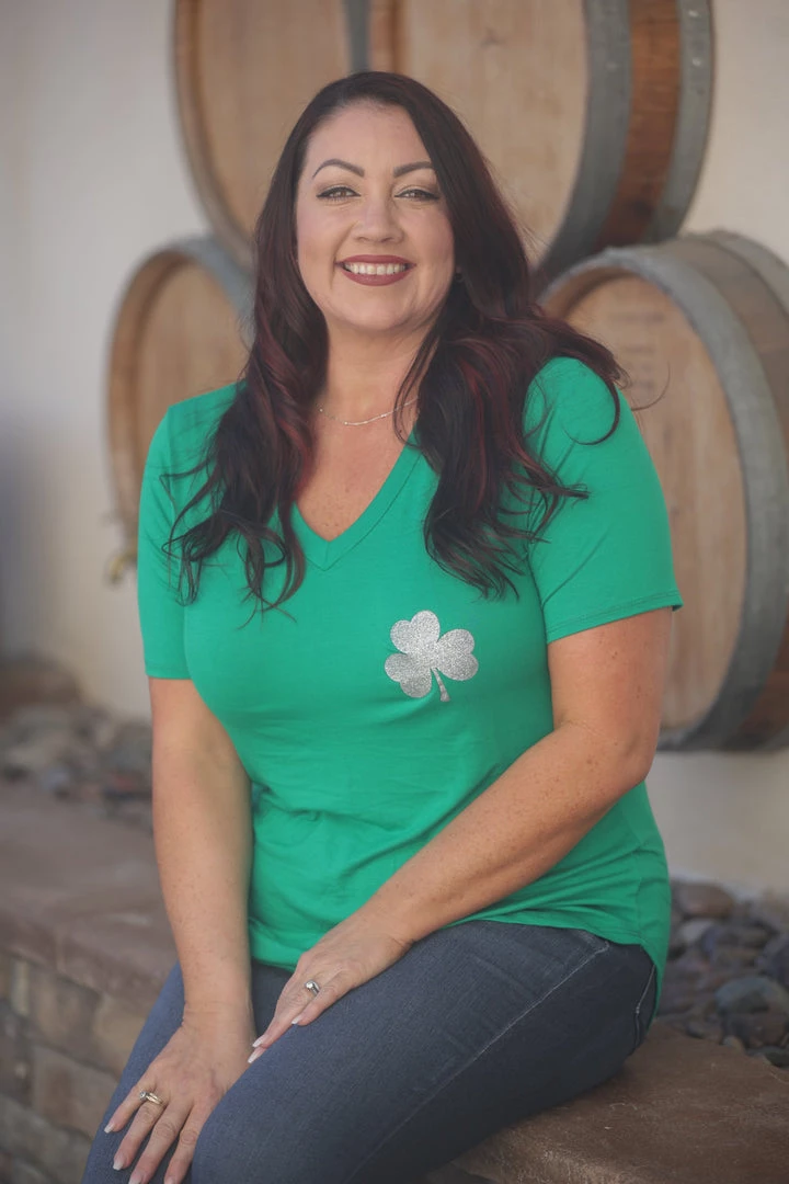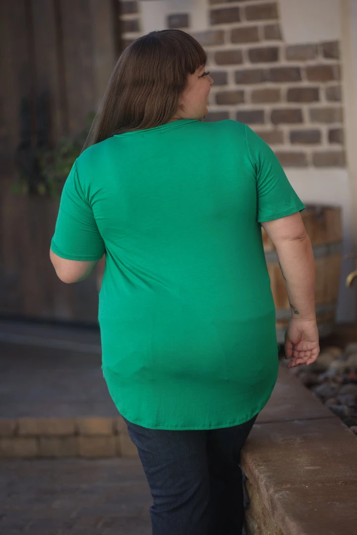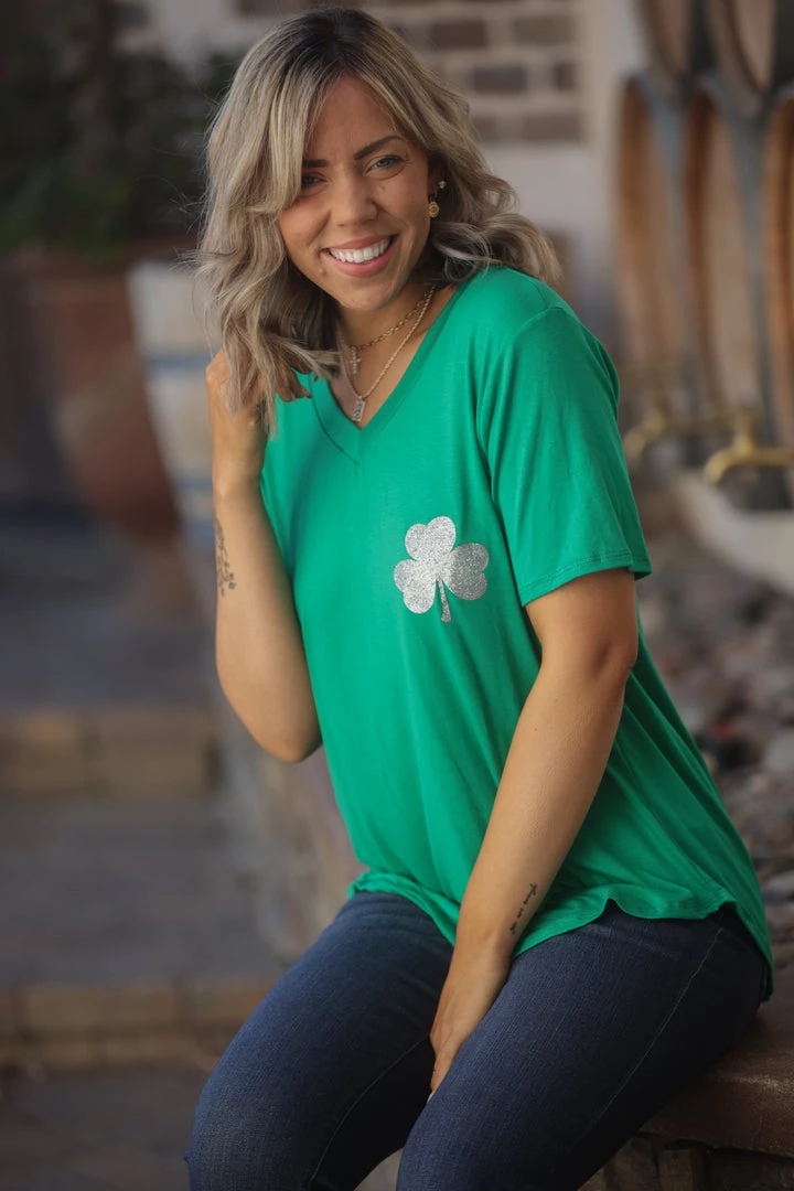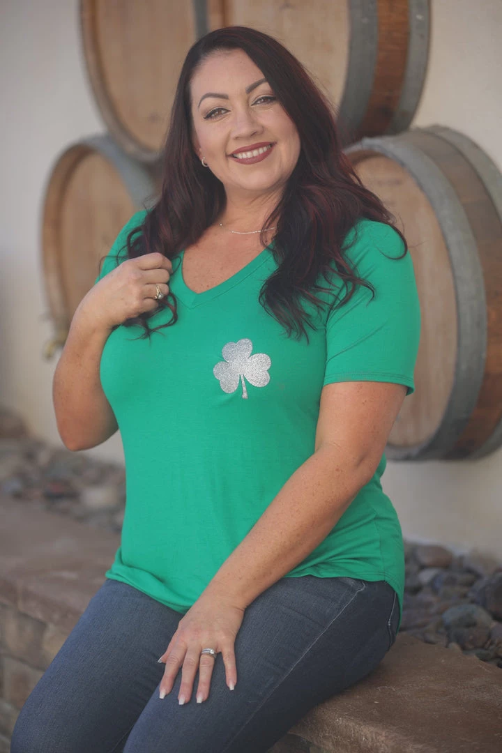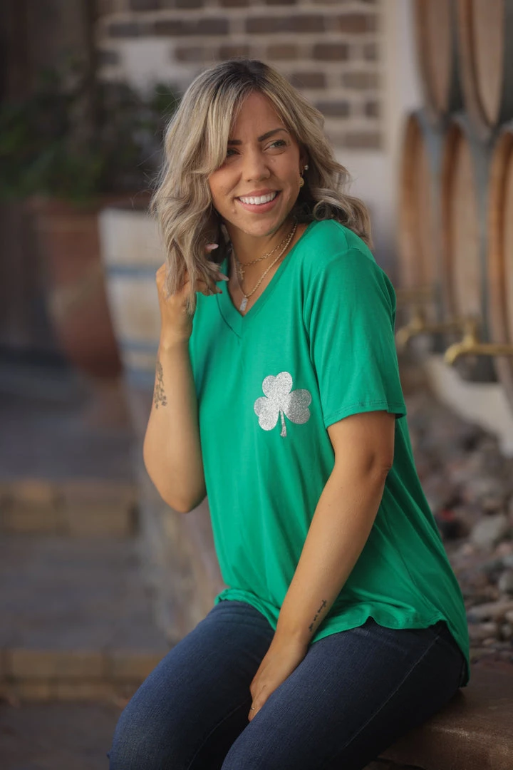 Bring on the luck of the Irish simple, yet fun short sleeve top. With a relaxed fit, this top features short sleeves a v-neckΒ and rounded hem.