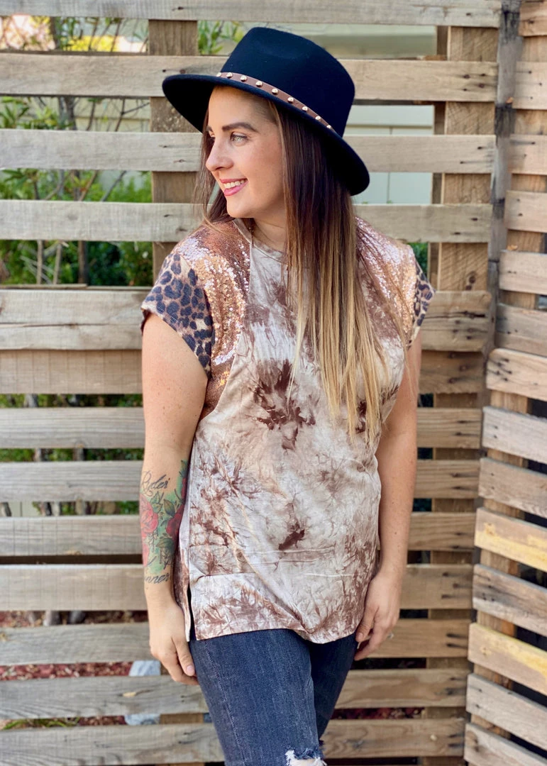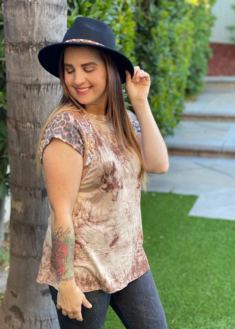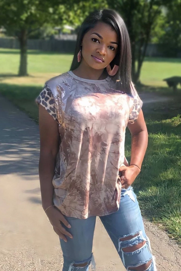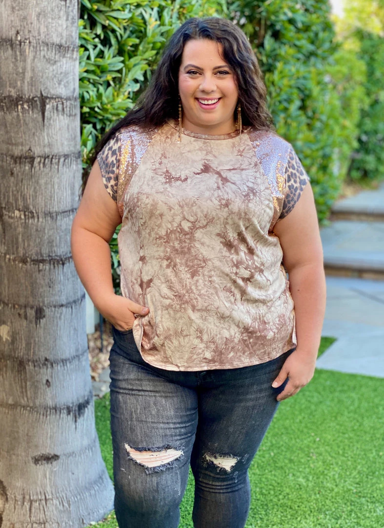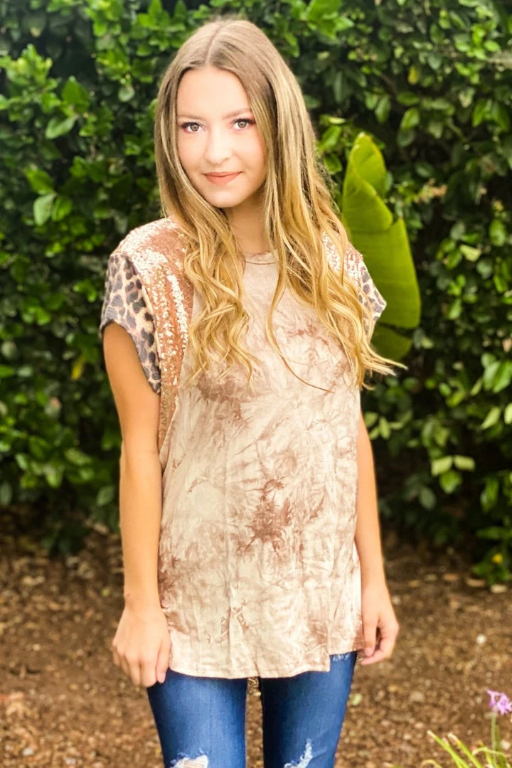 The neutral tones and pattern mixing in this short sleeve top gives us such a feeling of hope that better days are ahead.Β Β With an amazing relaxed fit, this top features a round neckline, short cap sleeves with sequence details.Β