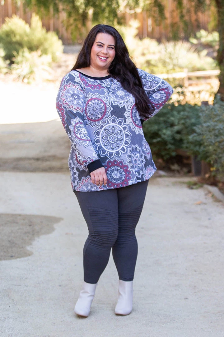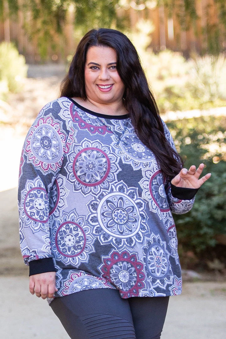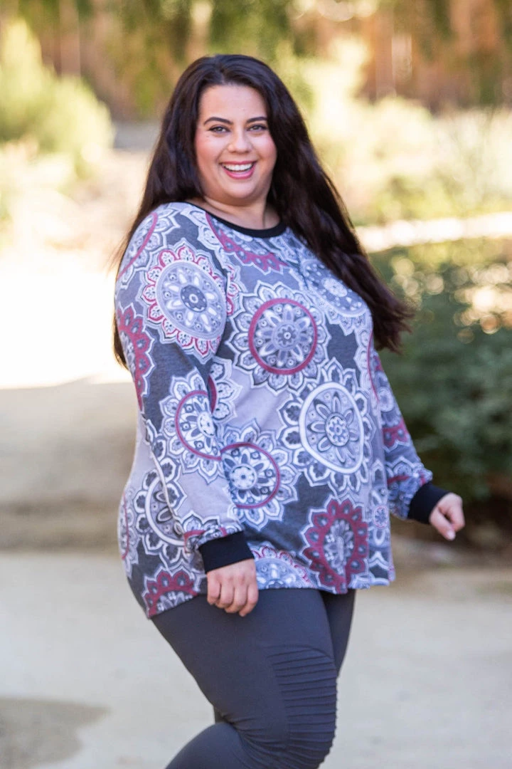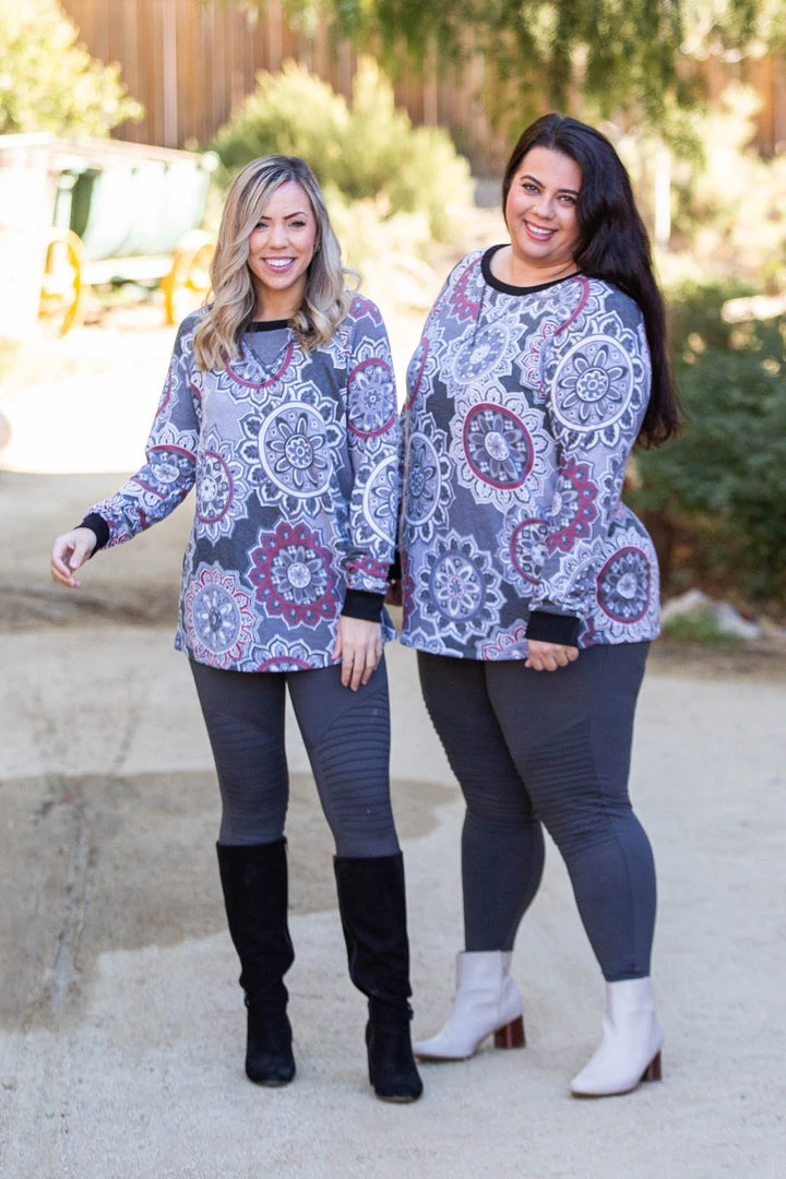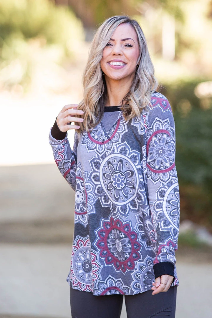 There’s just something about mandalas that have us charmed. This burgundy in this weekender really pops against the greys and blacks. Featuring a relaxed fit, round neckline and reverse stitching detail on the neckline, you’re going to need this piece in your life!Β