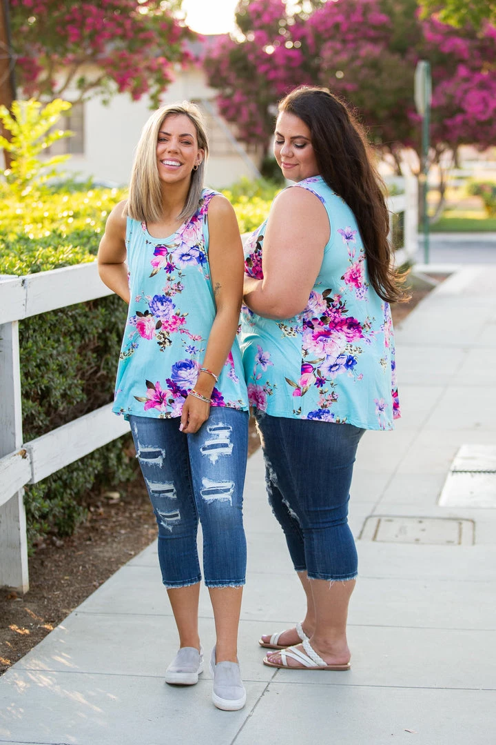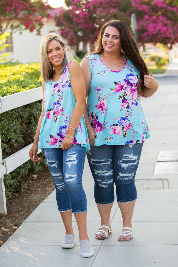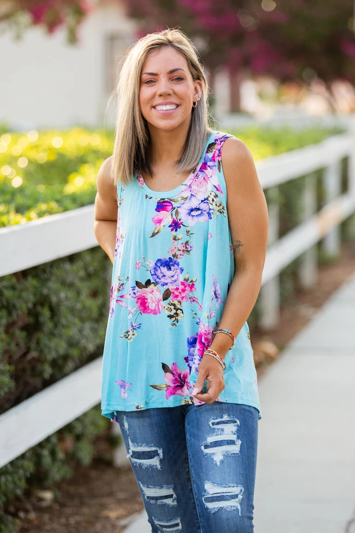 This floral sleeveless top is absolutely marvelous. With a relaxed fit, this top features a scoop neck and rounded hem.Β Β Β Β