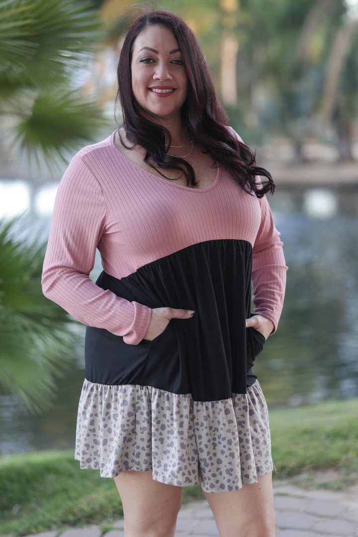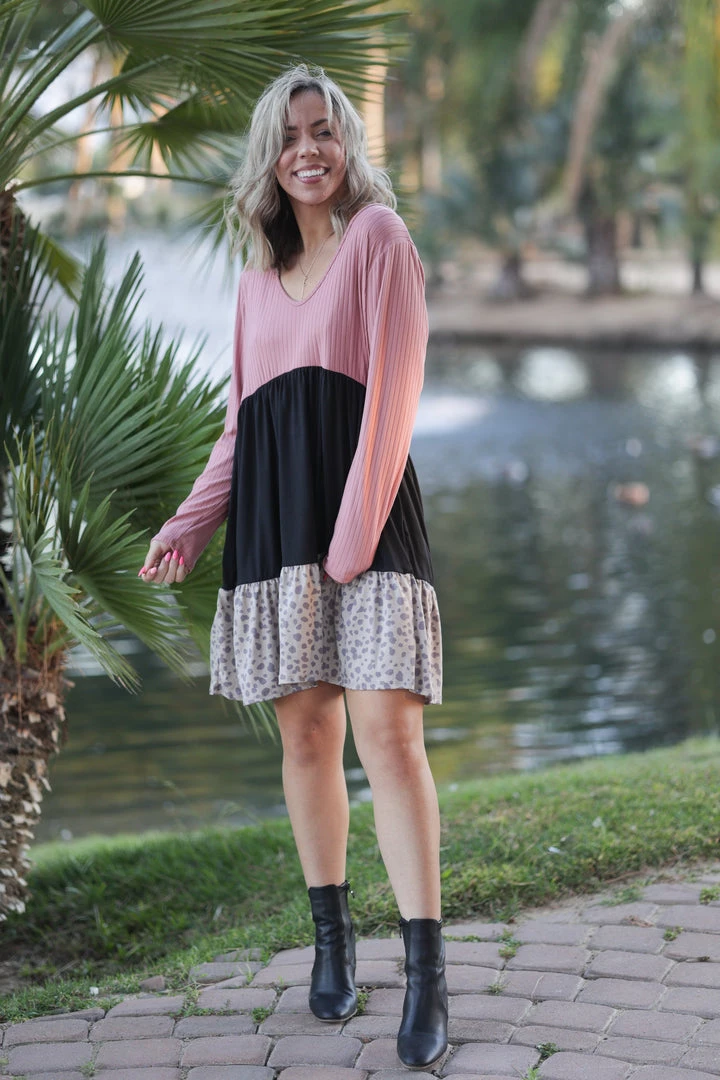 This softΒ mauve knit babydoll dress is PERFECT for any season! Wear this beauty with a pair of boots to complete the look. With a relaxed fit, this dress features a round neckline, long sleeves and pockets.Β