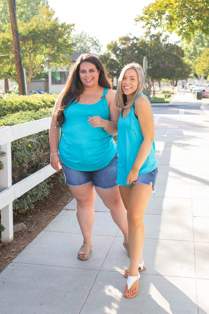This unique and fun take on an everyday tank has us swooning. With a relaxed fit, this top features a round neckline and adjustable buckle shoulder straps so you can really make this piece fit your body the absolute best.