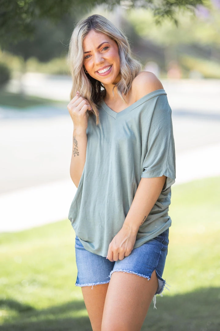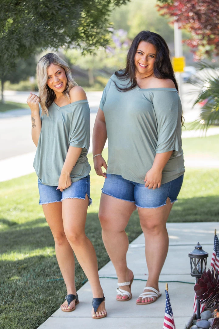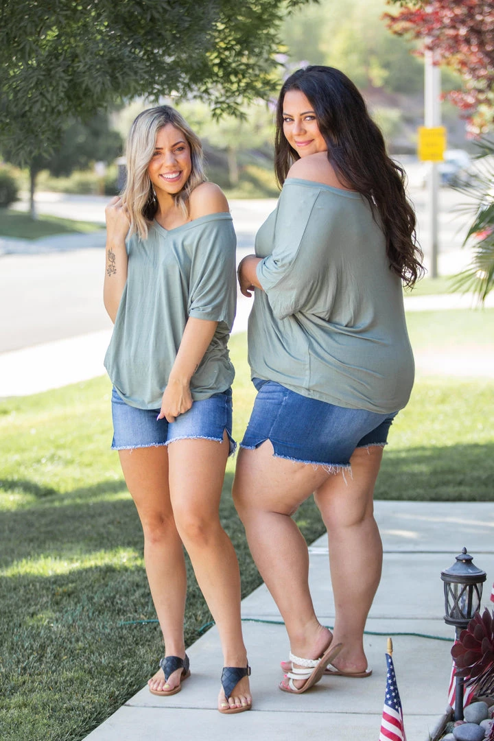 This dolman will become your forever dolman. With relaxed fit, this dolman features a v-neck, short dolman sleeves with a slightly tapered hem (great for hiding all bumps we don’t want to accentuate).Β