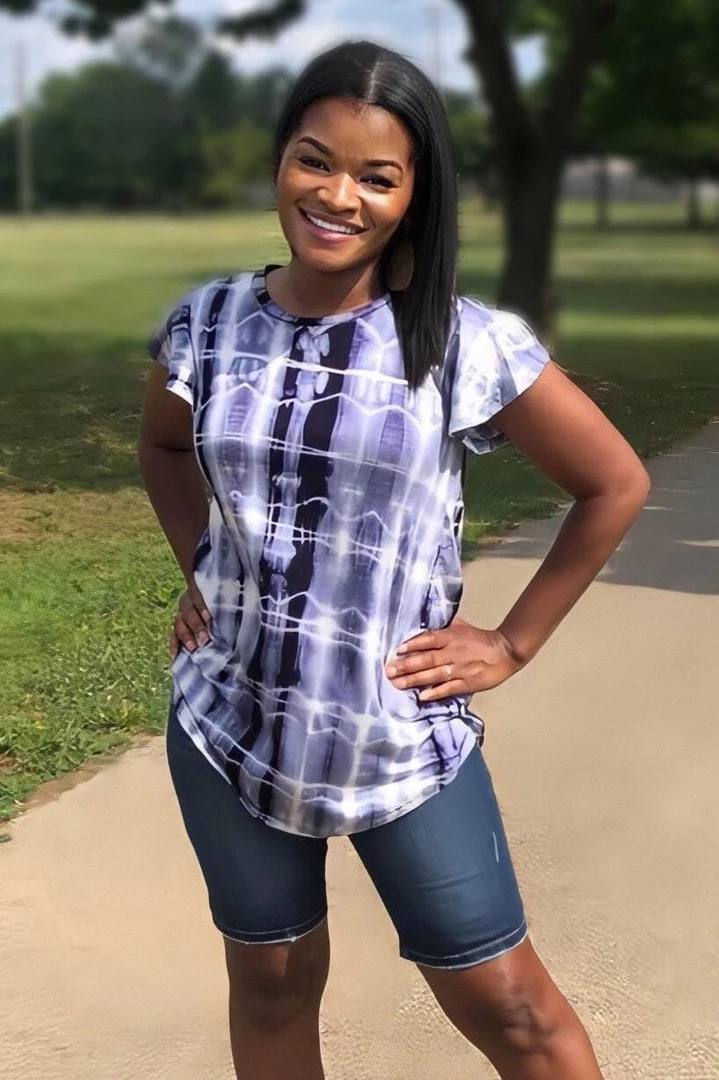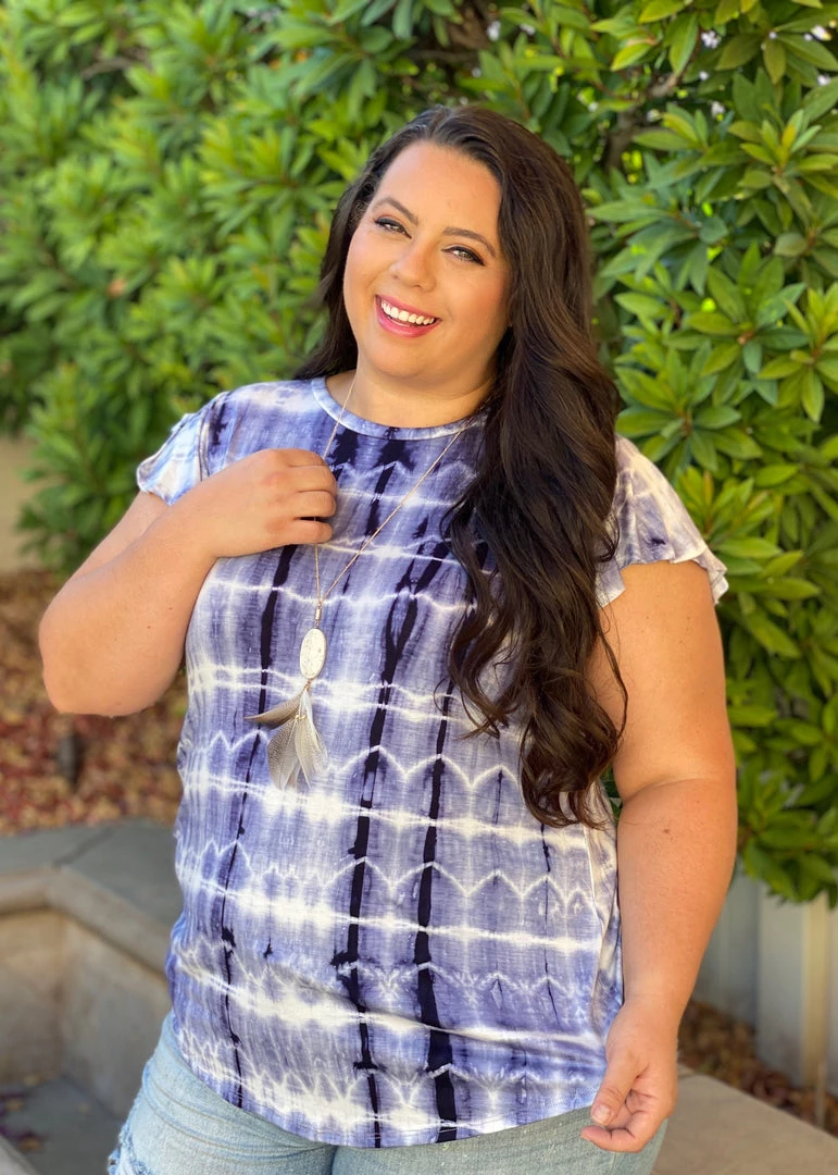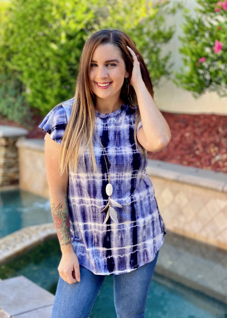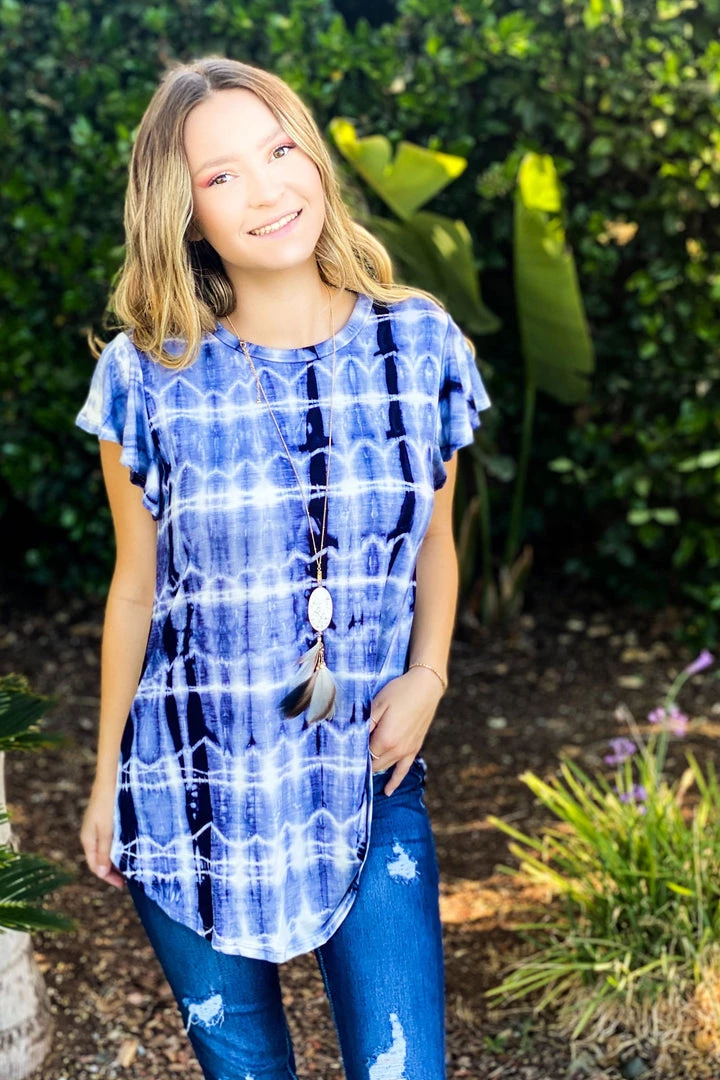 This top is exactly that, marvelously marbled with such an amazing tie dye print. Featuring a round neck, short flutter sleeves, this light weight shirt will become your next go to.Β Β Β Β