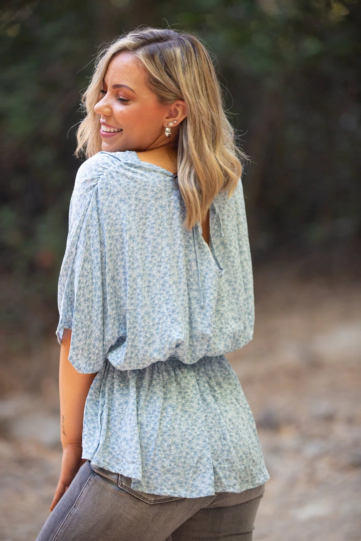 This lightweight woven top is the perfect transitional piece! Not only does it look adorable with a pair of shorts, but once things start to cool off throw on your favorite skinnies and boots for a fall look. Featuring a v-neck and elastic waist with adjustable self tie.Β