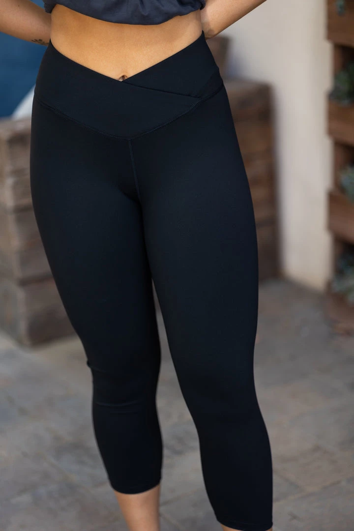 These super soft and stretchy leggings really give you the perfect curves! That overlapping v-band waistline make these pair of leggings absolutely unique and make them so easy to pair with your favorite crop. With a cropped 21″ inseam, throw on some tennies for a sporty look, or add some wedges for a dressier look.Β