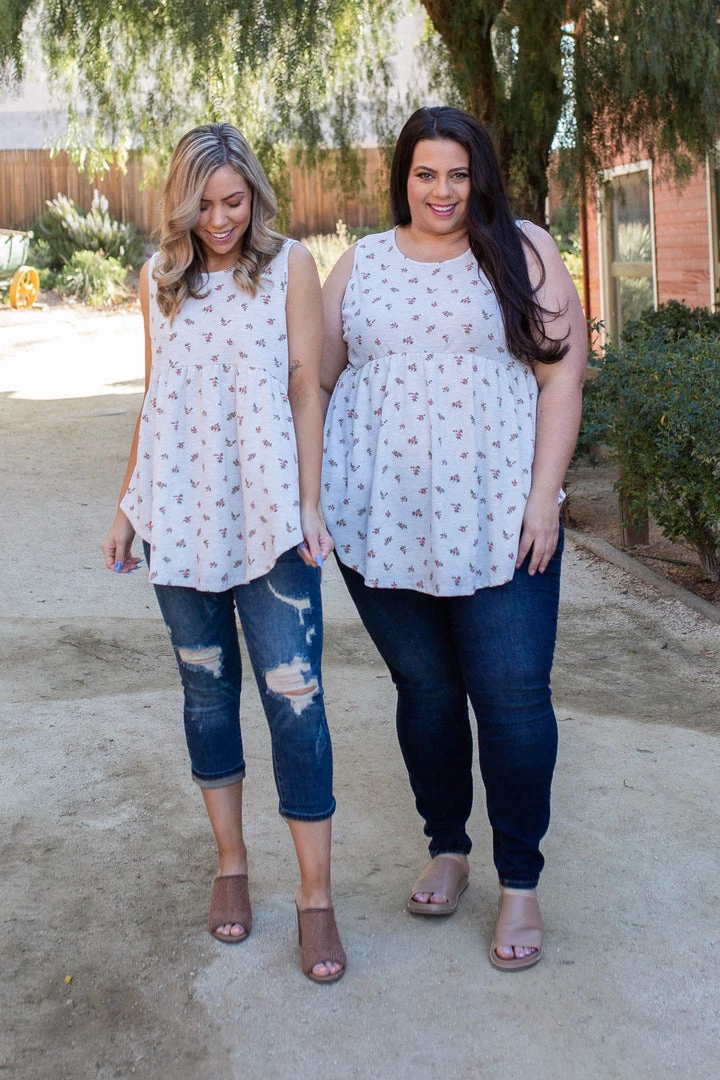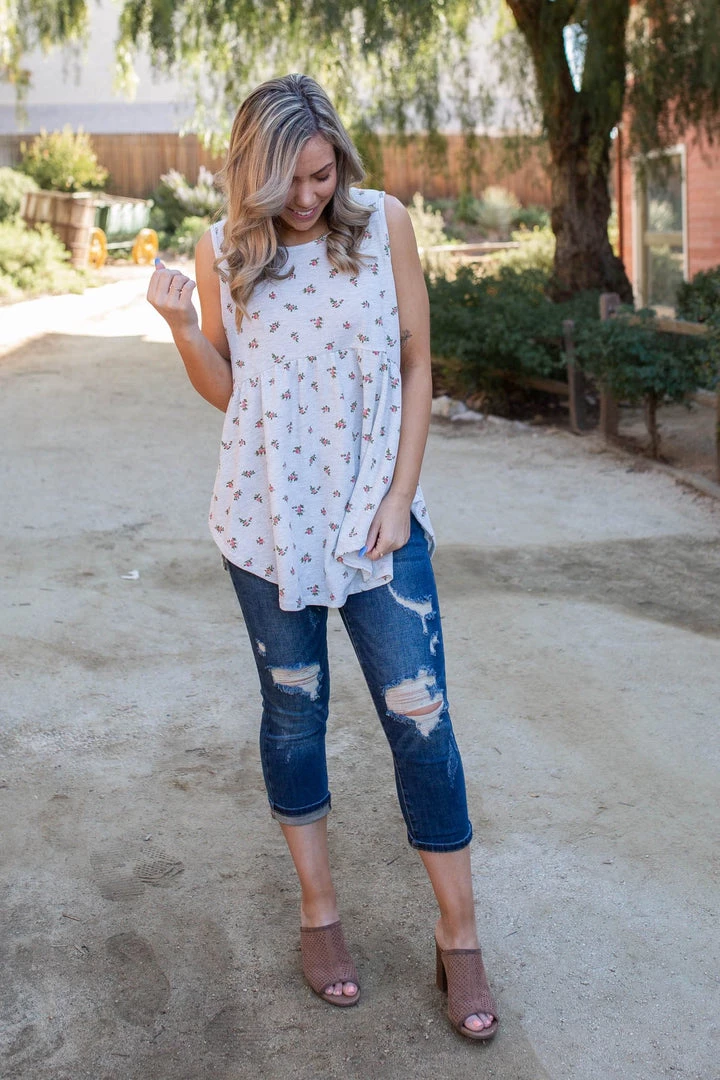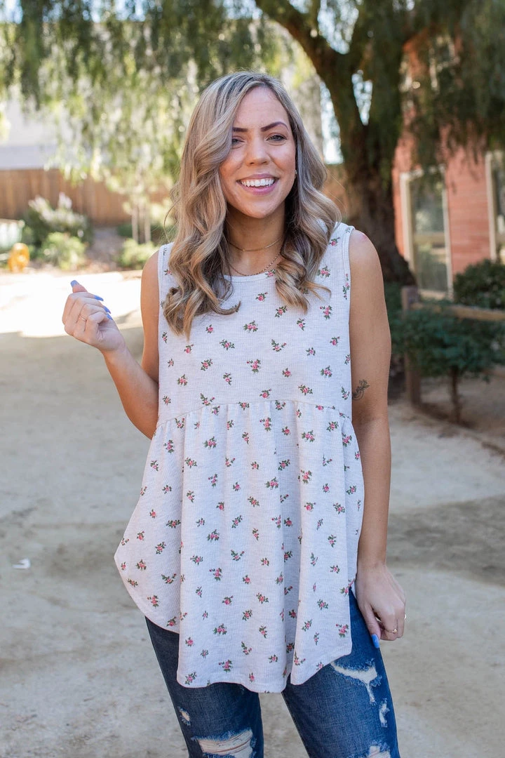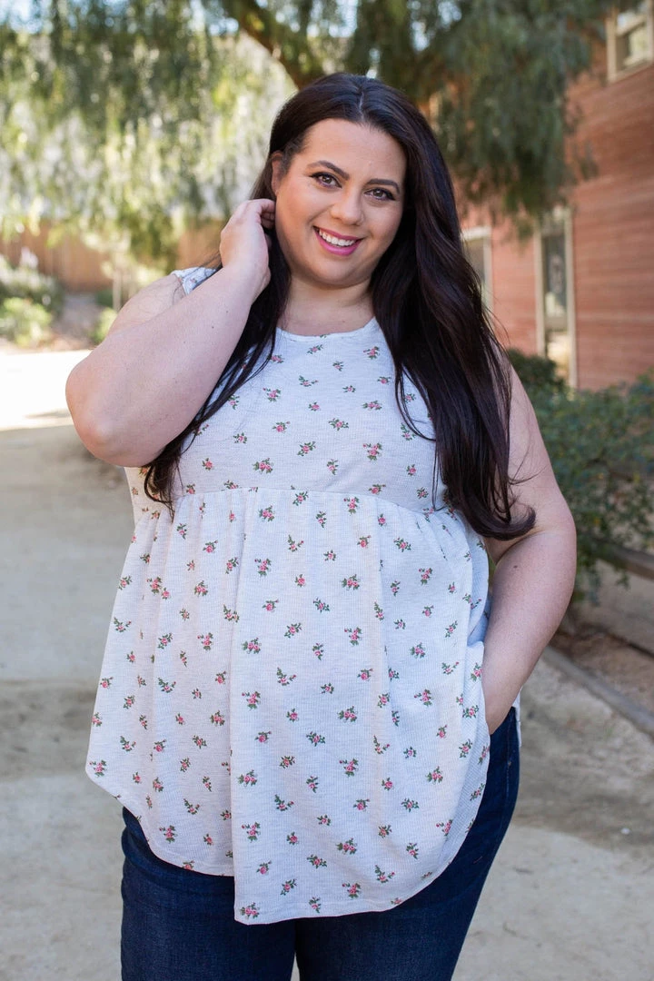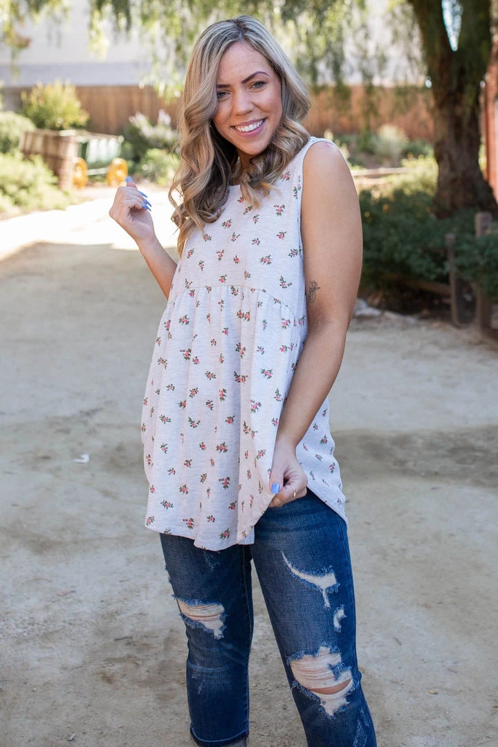 It is never ending bliss while wearing this gorgeous floral printed babydoll. With a relaxed fit, this sleeveless top features a rounded neckline and hem.Β