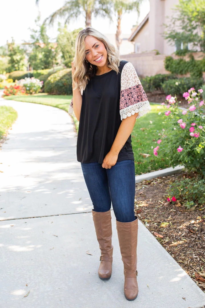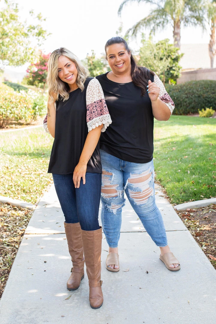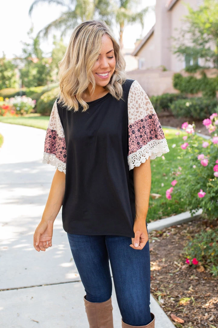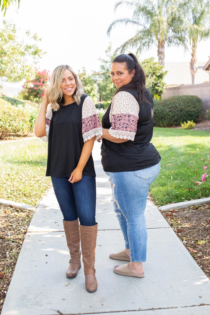 We are head over heels for the boho feels this gorgeous bell sleeve gives off. Made from buttery soft fabric, this top features a round neckline and color block bell sleeves with a lace trim.