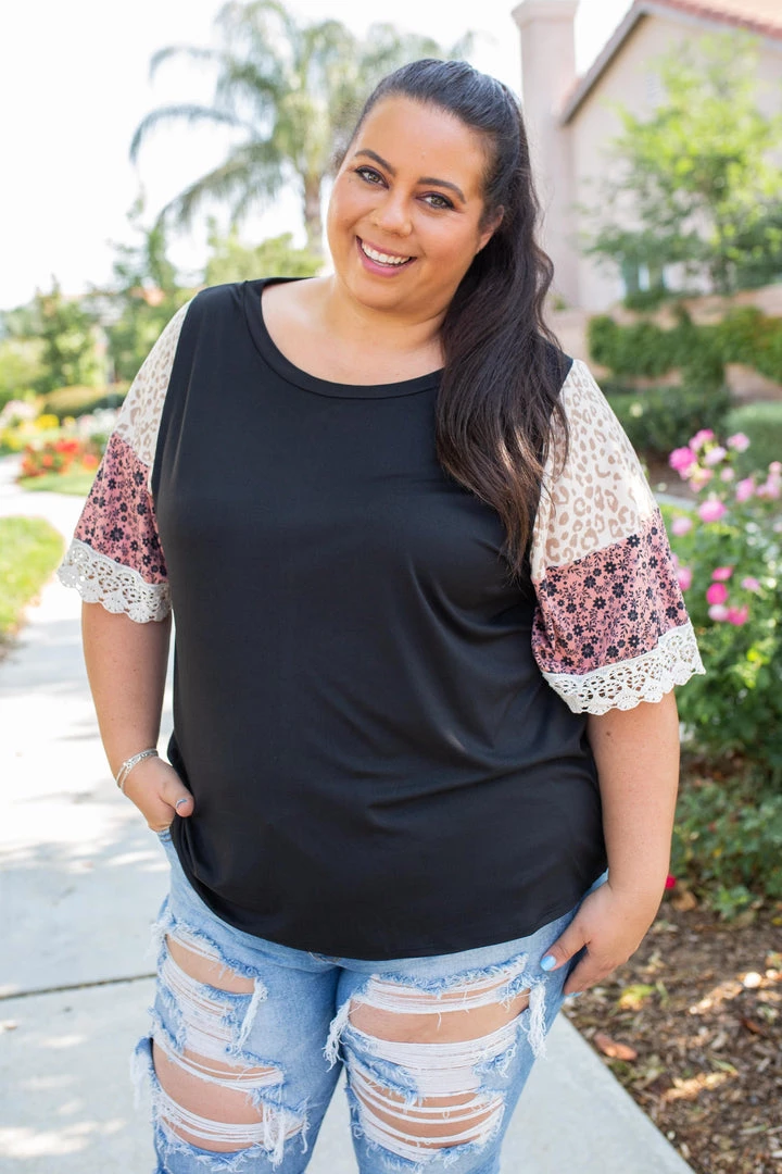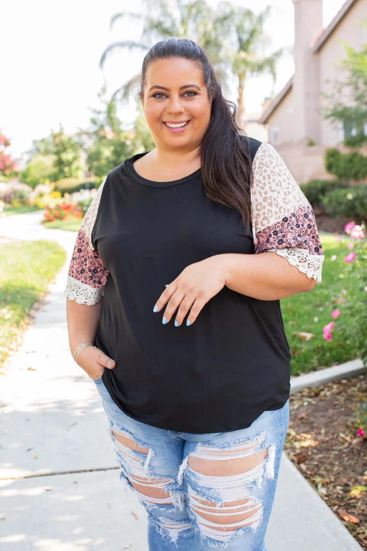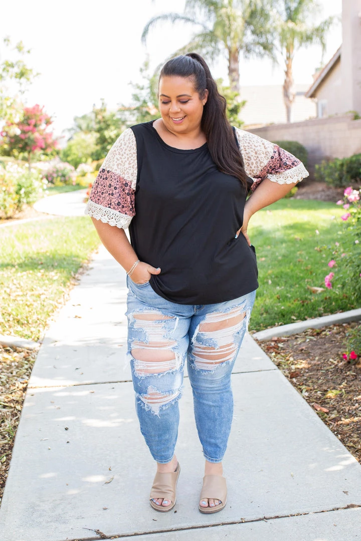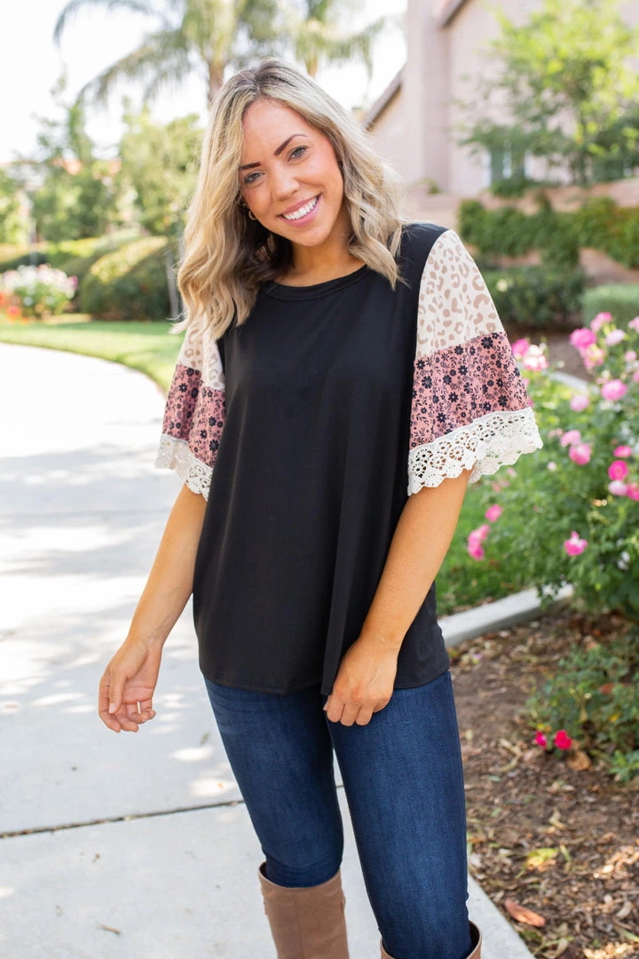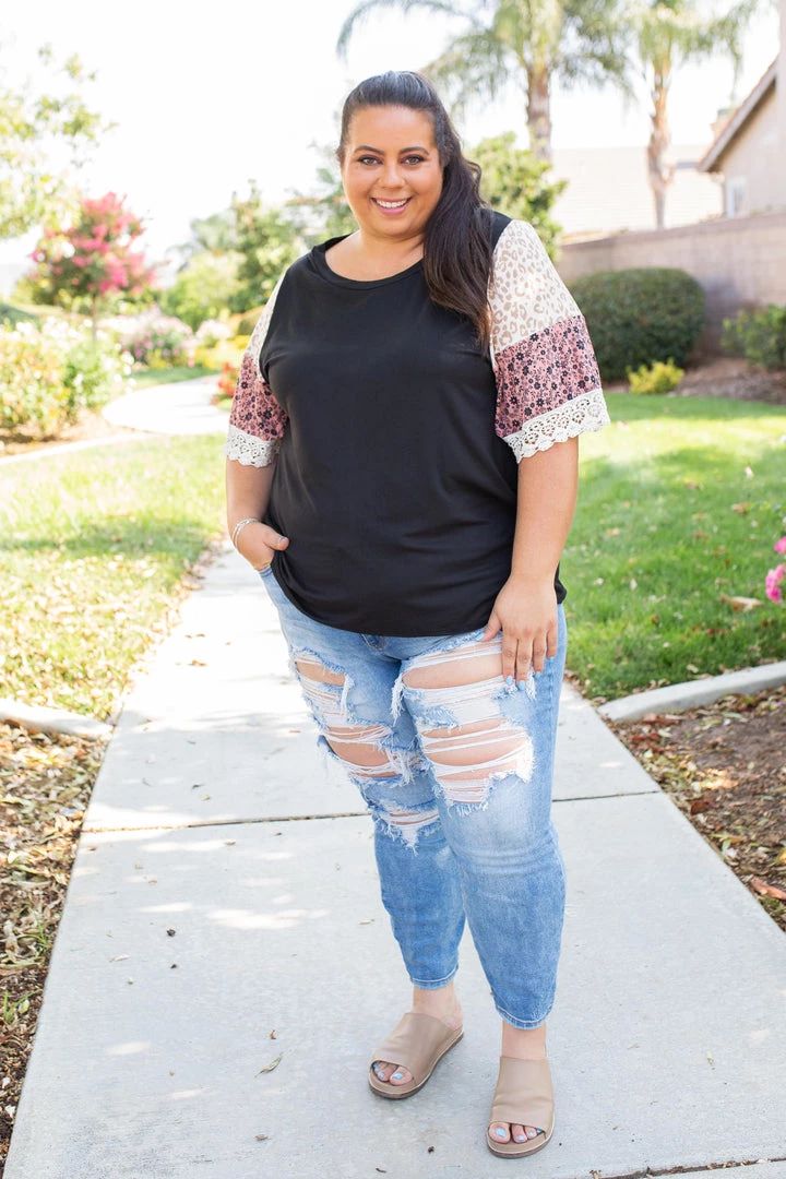 We are head over heels for the boho feels this gorgeous bell sleeve gives off. Made from buttery soft fabric, this top features a round neckline and color block bell sleeves with a lace trim.