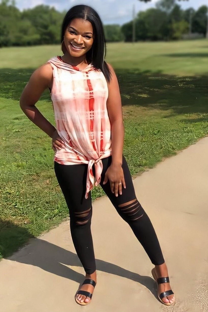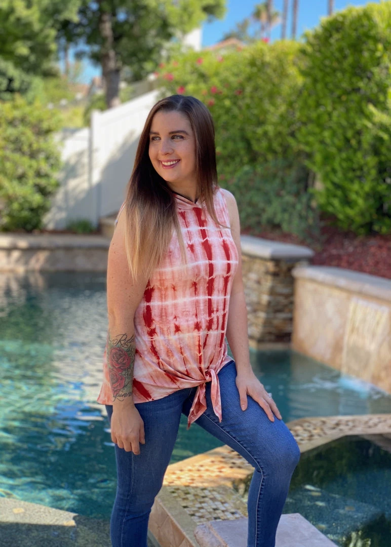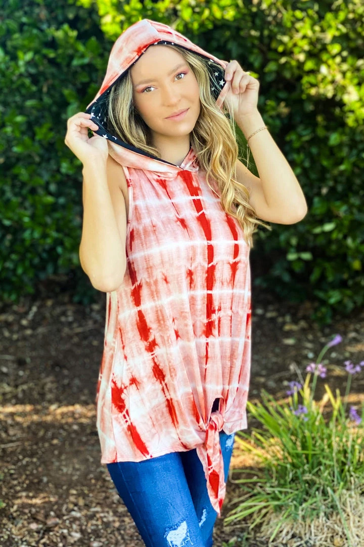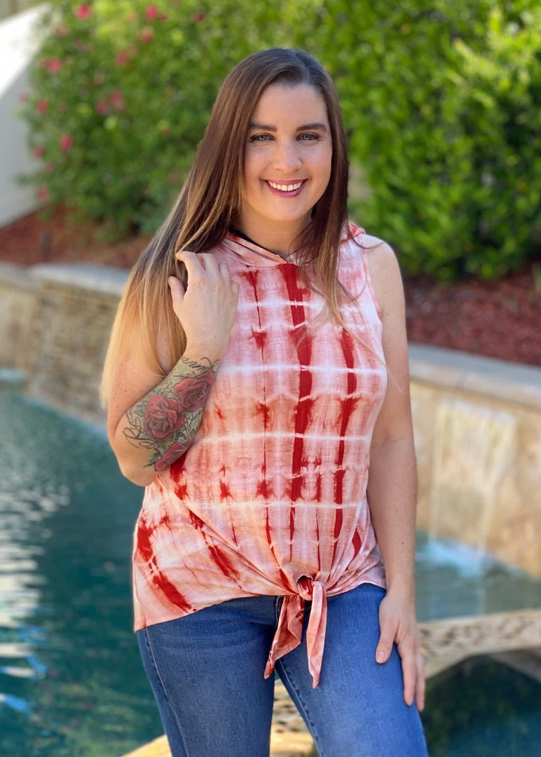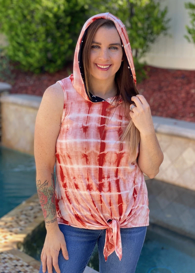 This tank hoodie reminds us of those hot summer nights spent out around a campfire on the beach or around the lake. The fabric is lightweight, yet cozy, such a great piece to throw over your swimsuit or for a day at the park. Featuring a relaxed fit, effortless sleeves, front knot detail and hoodie.Β Β
