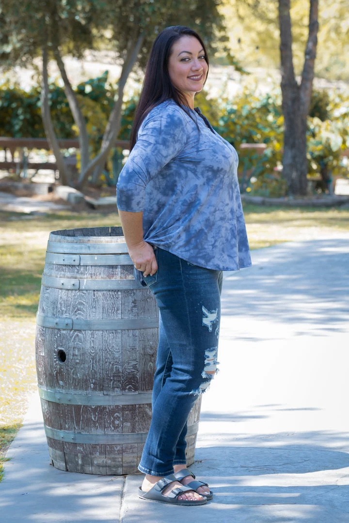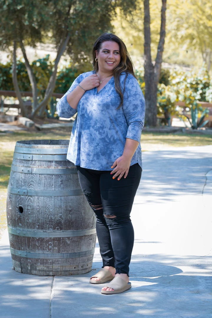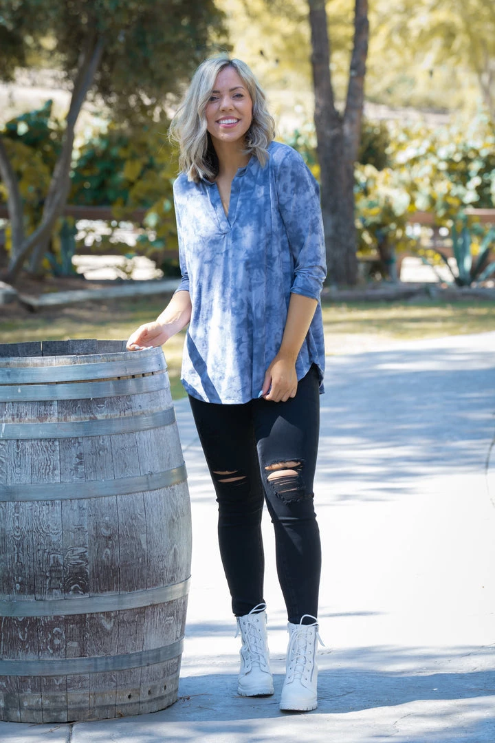 SearchingΒ for the perfect lightweight tunic? Look no further. Β Featuring a banded collar, v-neck and buttoned 3/4 sleeves, this top will make gettingΒ dressed seem effortless.Β Β