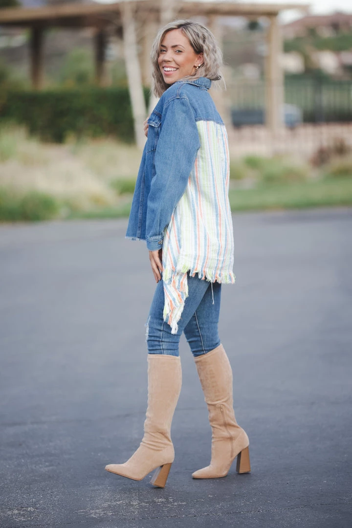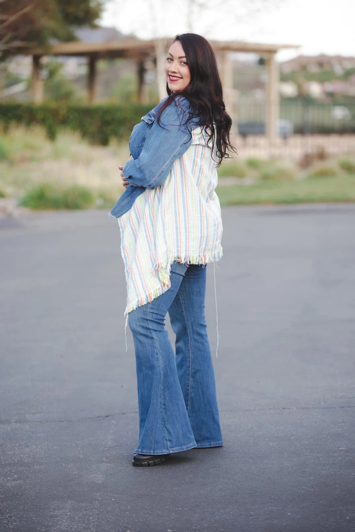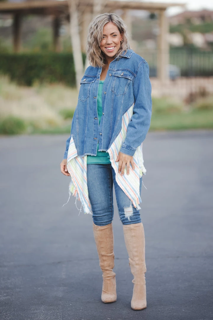 This denim jacket is the most unique and amazing jacket we have seen in quite some time. This jacket has everything we love about denim jackets, but also has that amazing fringed back panel. Absolutely obsessed!