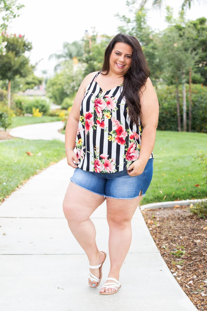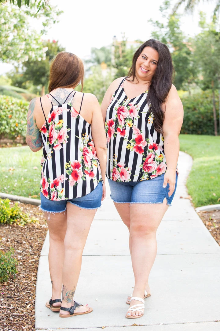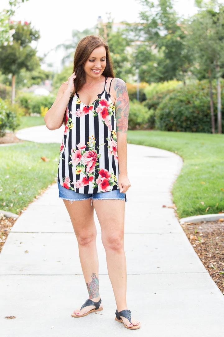 This cami style tank is the perfect piece to wear year round. Wear it on it’s own during those warmer months or layered under your favorite cardigan as it cools down. Made from a lightweight, amazing crepe fabric, this top features a relaxed fit, v-neck and spaghetti straps.Β