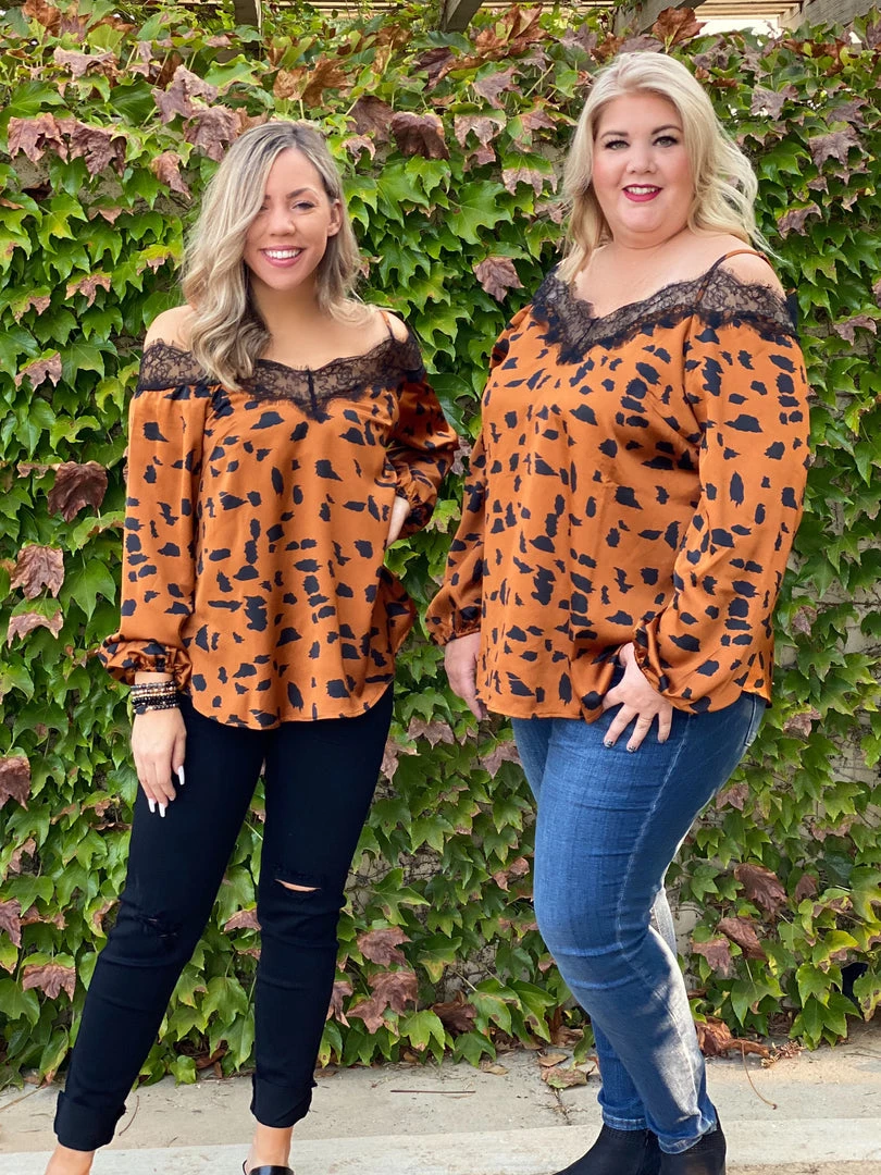 October nights are calling our name with this gorgeous off the shoulder long sleeve top. Featuring adjustable shoulder straps, banded sleeves and lace trim detail.Β