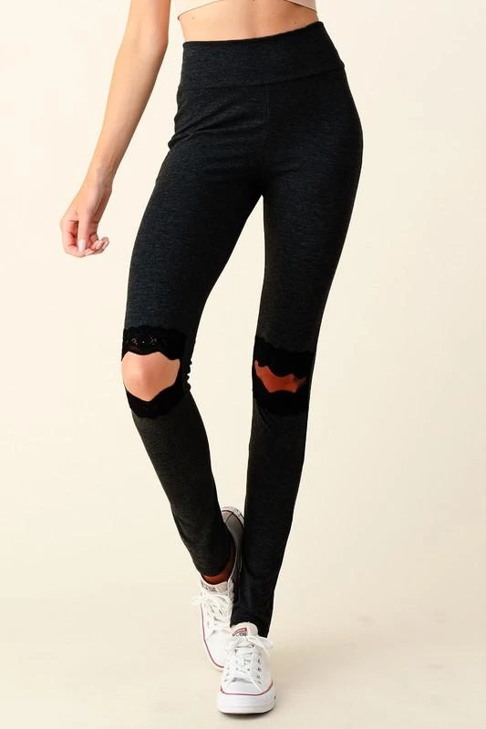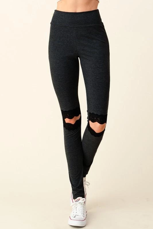 These leggings are amazing! Buttery soft, nice and stretchy yet hold you in and the lace cutout detail on the knees!!! Amazing! Such a fun twist to classic black pair of leggings.