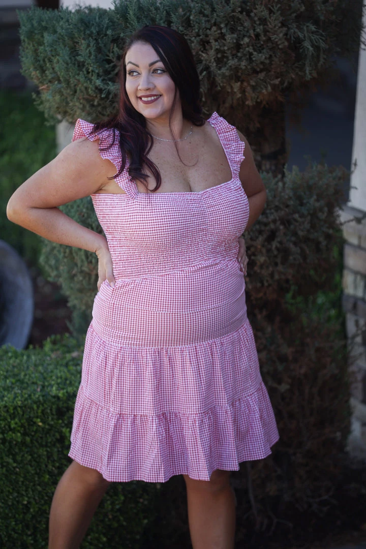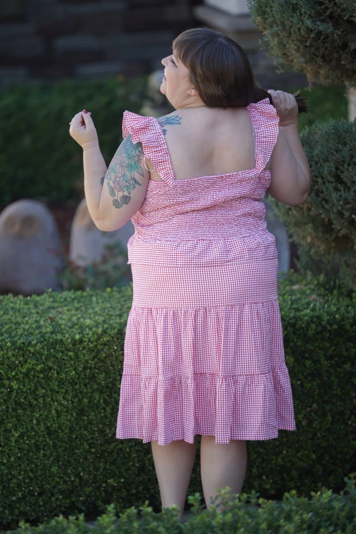 THE best dress to wear to any outdoor gathering, whether it be patriotic or just a casual picnic. Made from a lightweight woven material, this dress features a sweetheart neckline with ruffled straps, tiered body and ruched bodice.Β