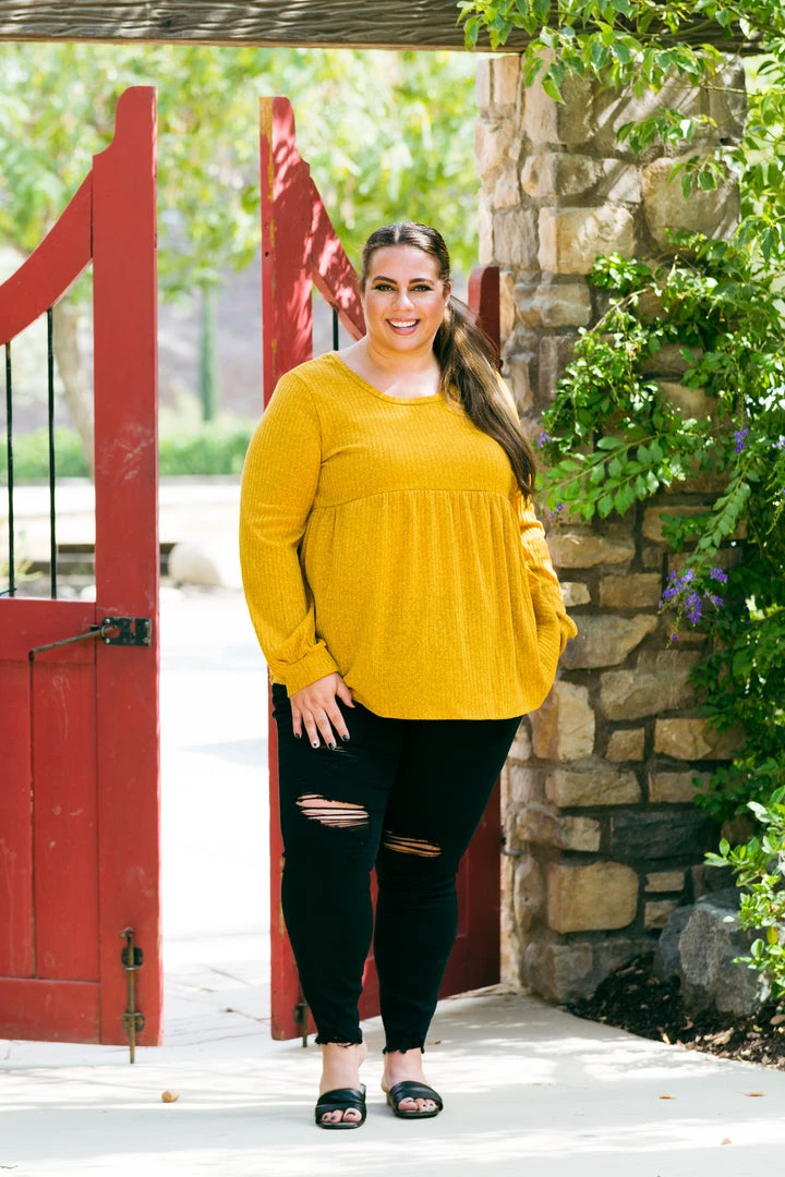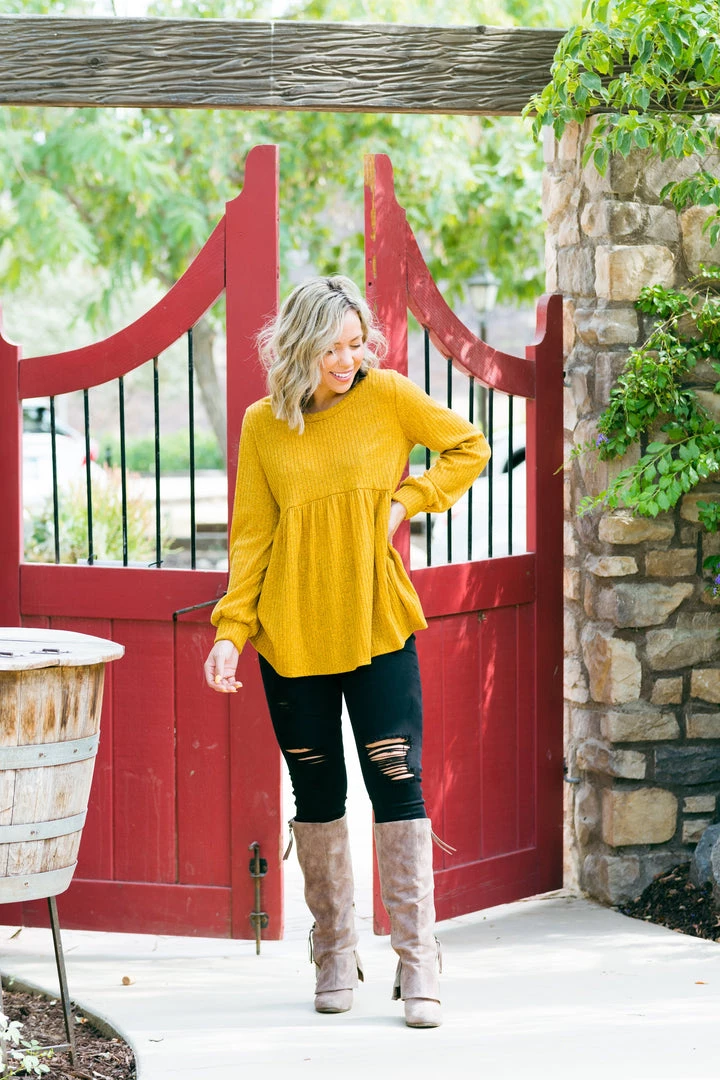 This gorgeous two-tone hacci babydoll tunic is not only super soft, but it’s such a flattering classic piece. Featuring a scoop neckΒ and long bubled sleeves.
