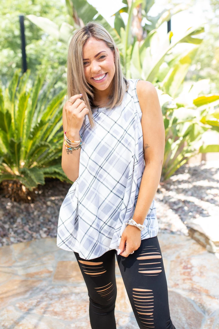 ThisΒ plaid sleeveless top is one that you don’t want to pass up. The fit is perfect and it’s oh so flattering on all body types. With a relaxed fit, this top features a round neckline and rounded hem.Β Β Β