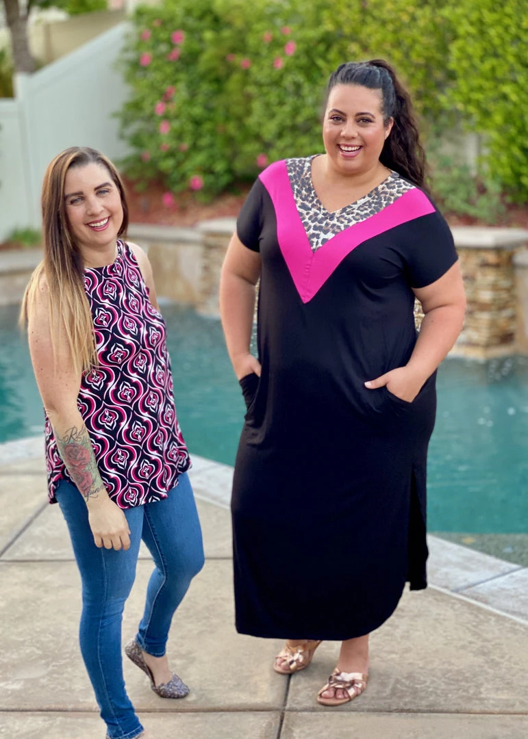The black and pink combo in this damask printed bulgari top really makes it pop! With no fuss sleeves, this top features a curved hem and relaxed fit.Β Β