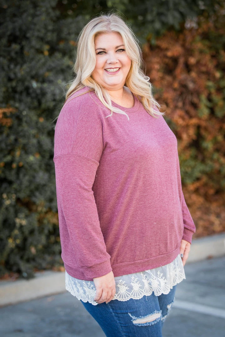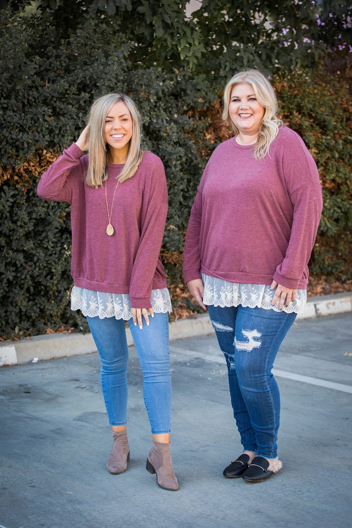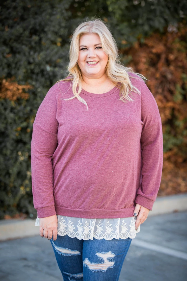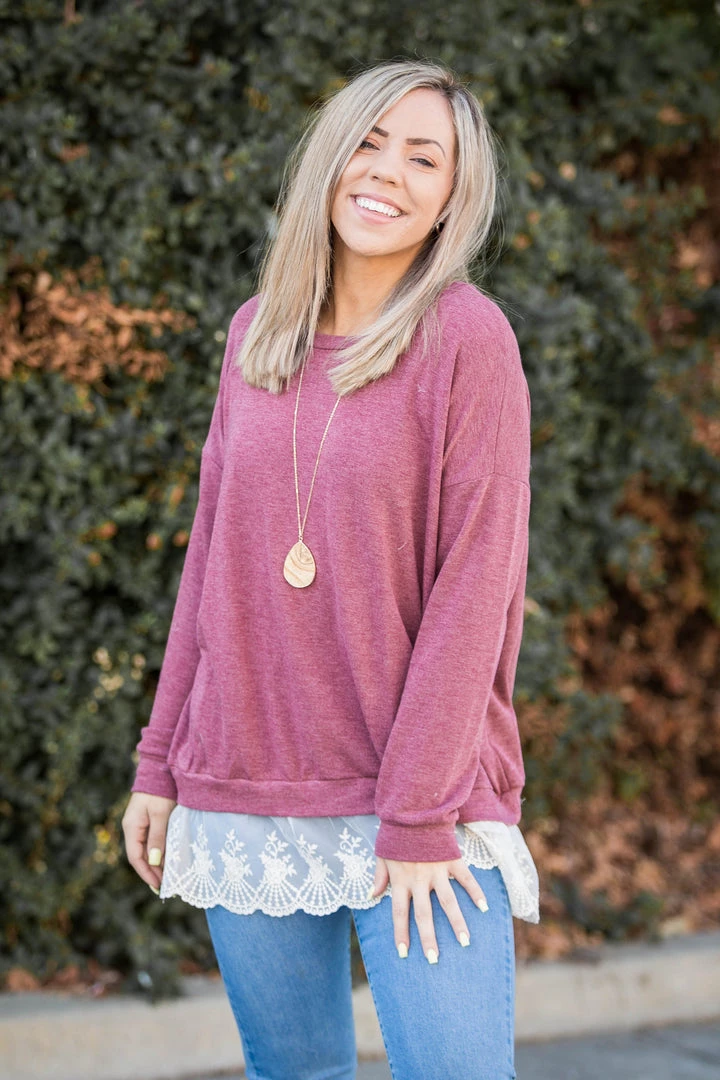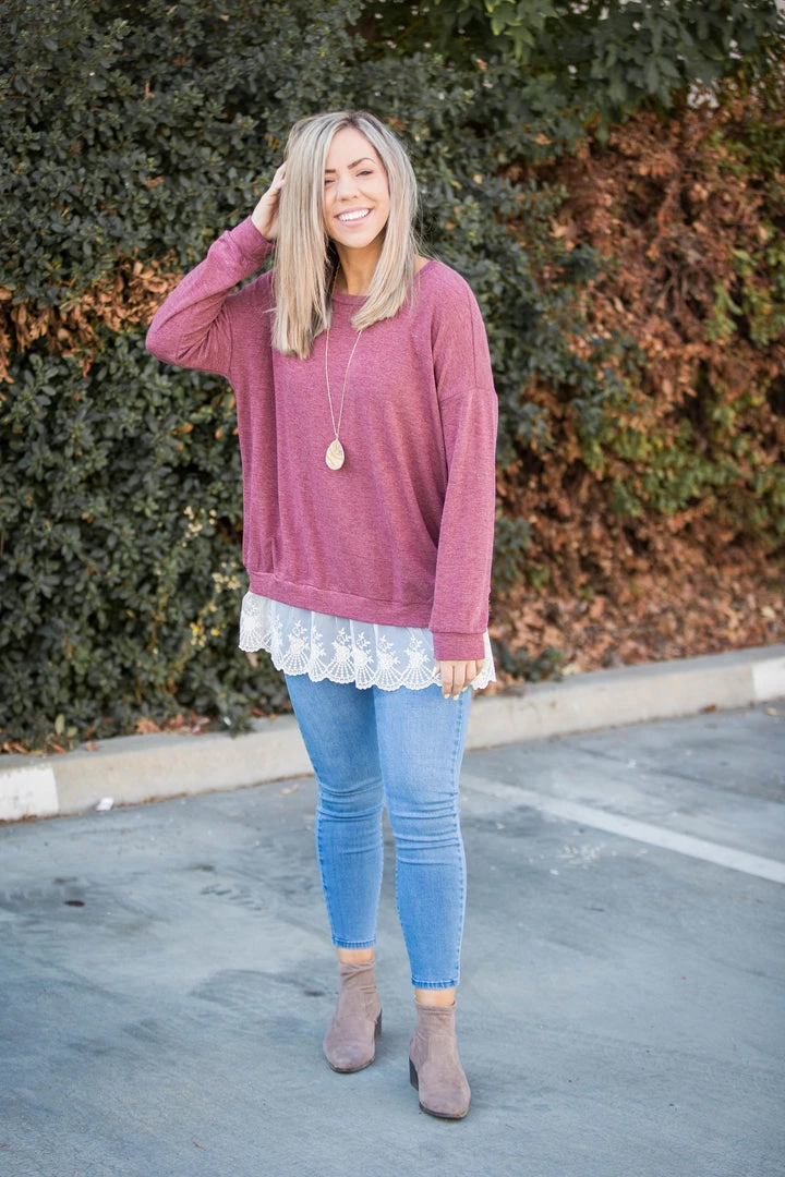 Add some extra flare to your wardrobe with this gorgeous ruffled pullover! Featuring a relaxed a fit, long sleeves, round neckline and a ruffled eyelet hem.