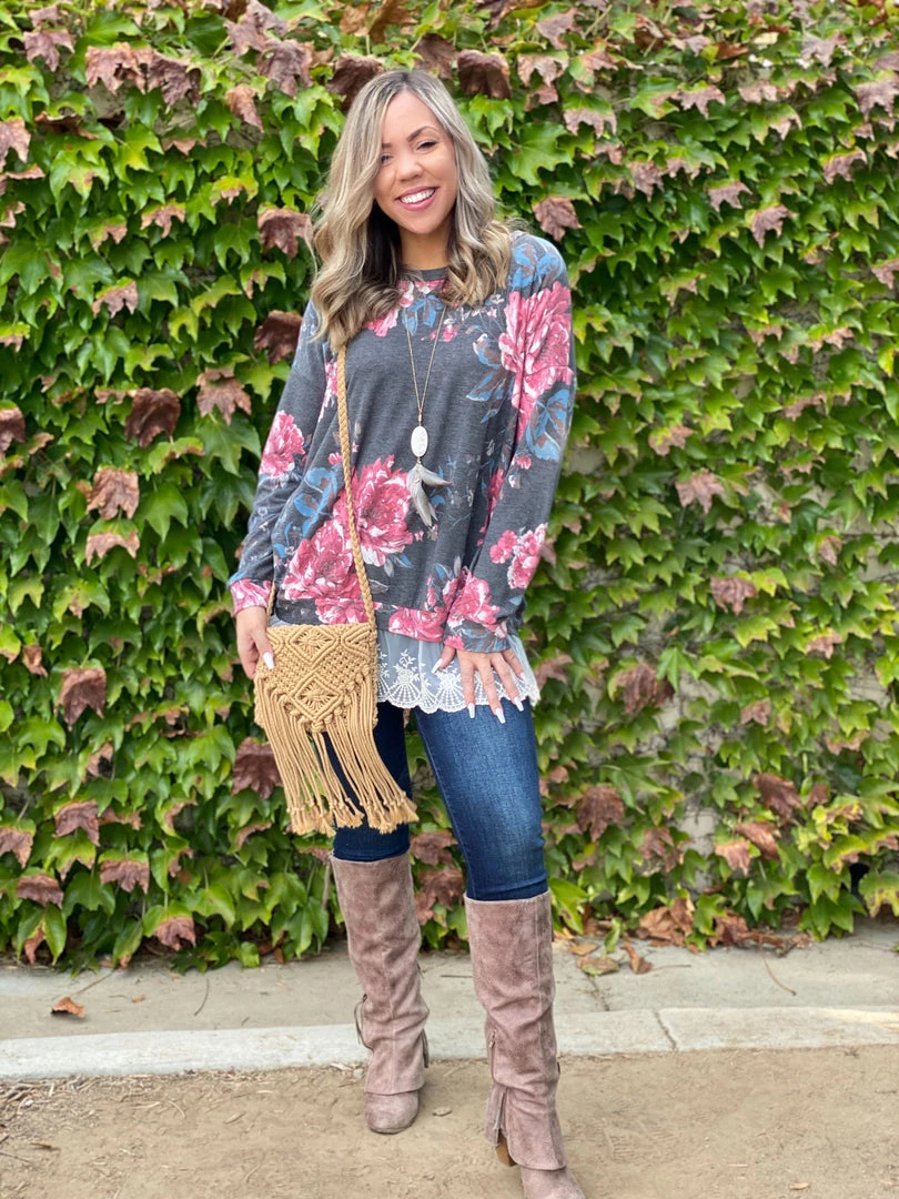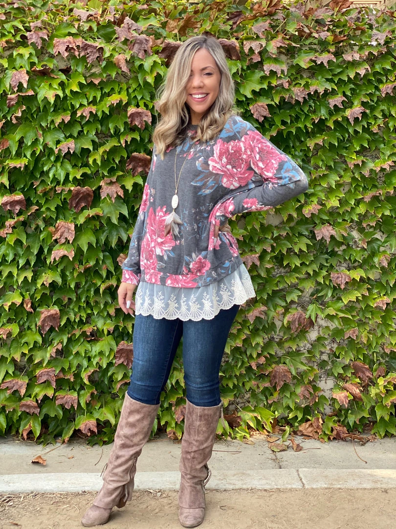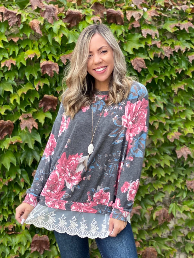Add some extra flare to your wardrobe with this gorgeous ruffled pullover! Featuring a relaxed a fit, long sleeves, round neckline and a ruffled eyelet hem.